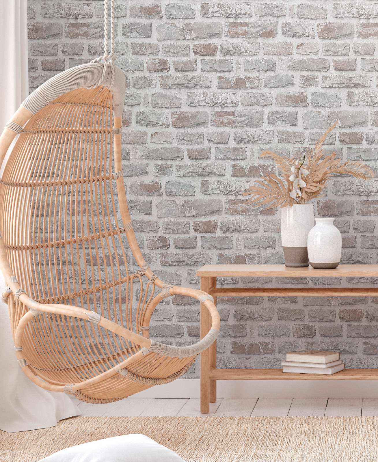 Create a sense of grounded elegance with the Classic Brickstone – Natural Wallpaper – Grey.