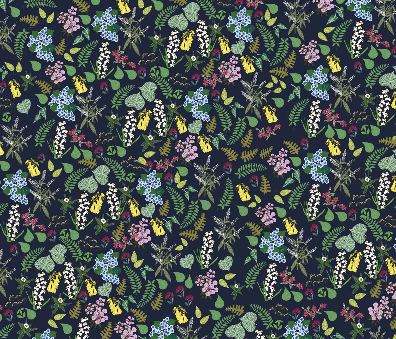 The Design: On a school camp in the Abel Tasman National Park - Nelson artist H.O.M discovered (or stumbled upon - literally) a jungle of beautiful native New Zealand flora on the way. Check out the native NZ Easter Orchid (Epiphyte), delicate Manuka flowers, bright yellow Kowhai, Pohutukawa, Kawa Kawa leaf, an array of ferns, cow parsley (non native but we love it) and some Koromiko.