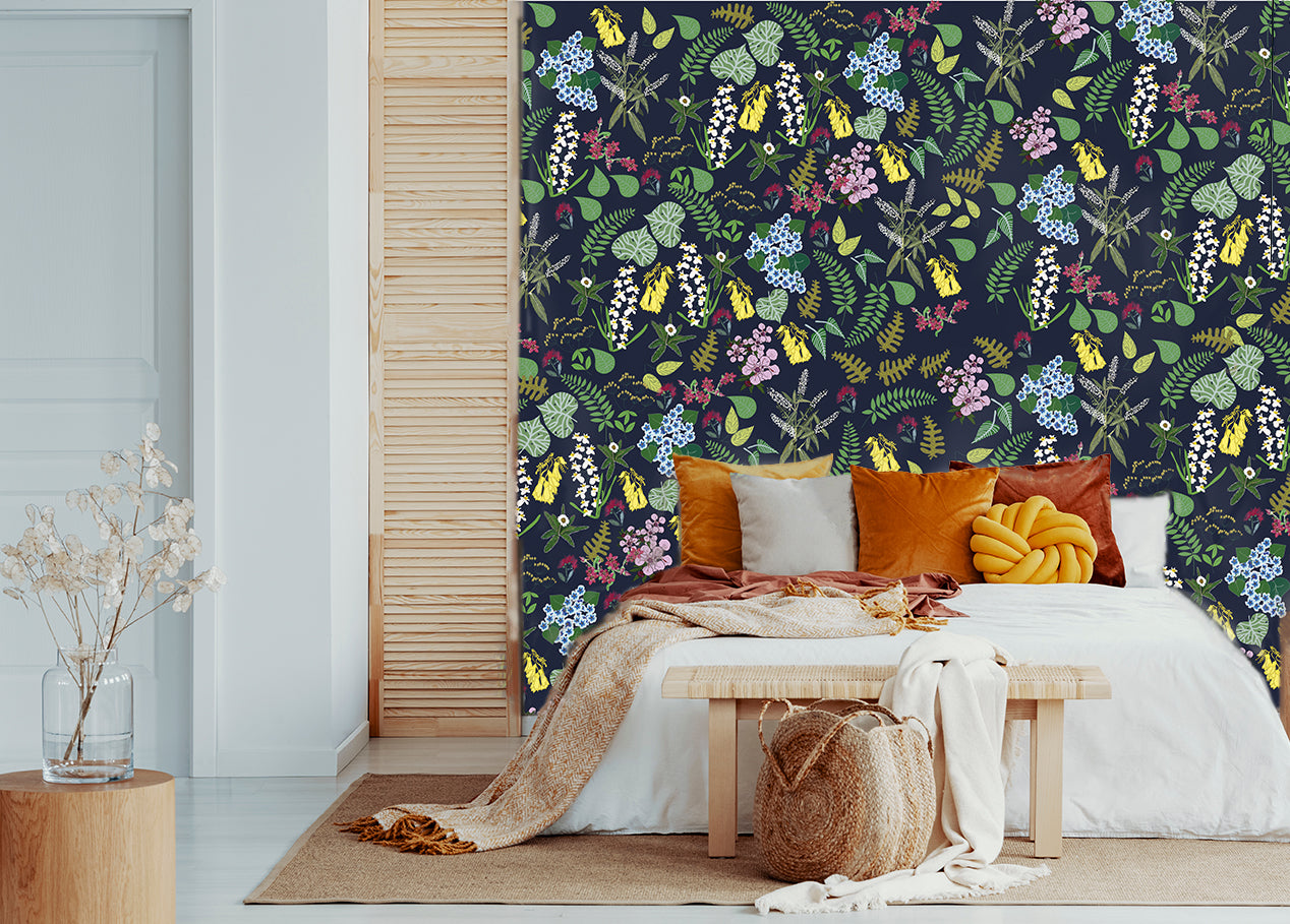 We print this as a mural so it is a non repeating pattern - wild and scattered like nature itself. It also means we can play around with scale and colour upon request.