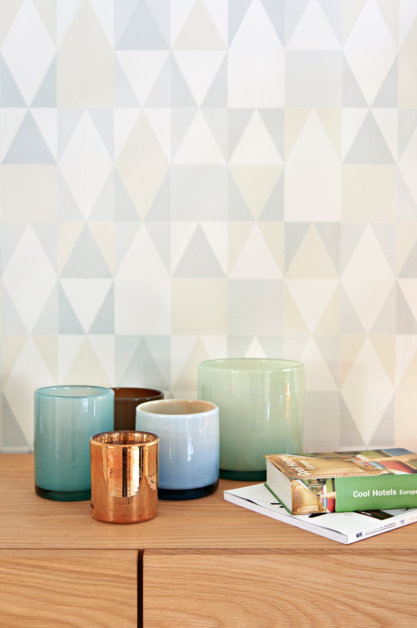 At last a soft geometric wallpaper! Typically Scandinavian in design, and with a hand painted feel, our 'Alice Geometric' wallpaper is for those who love anything uniquely retro styled and hand painted.