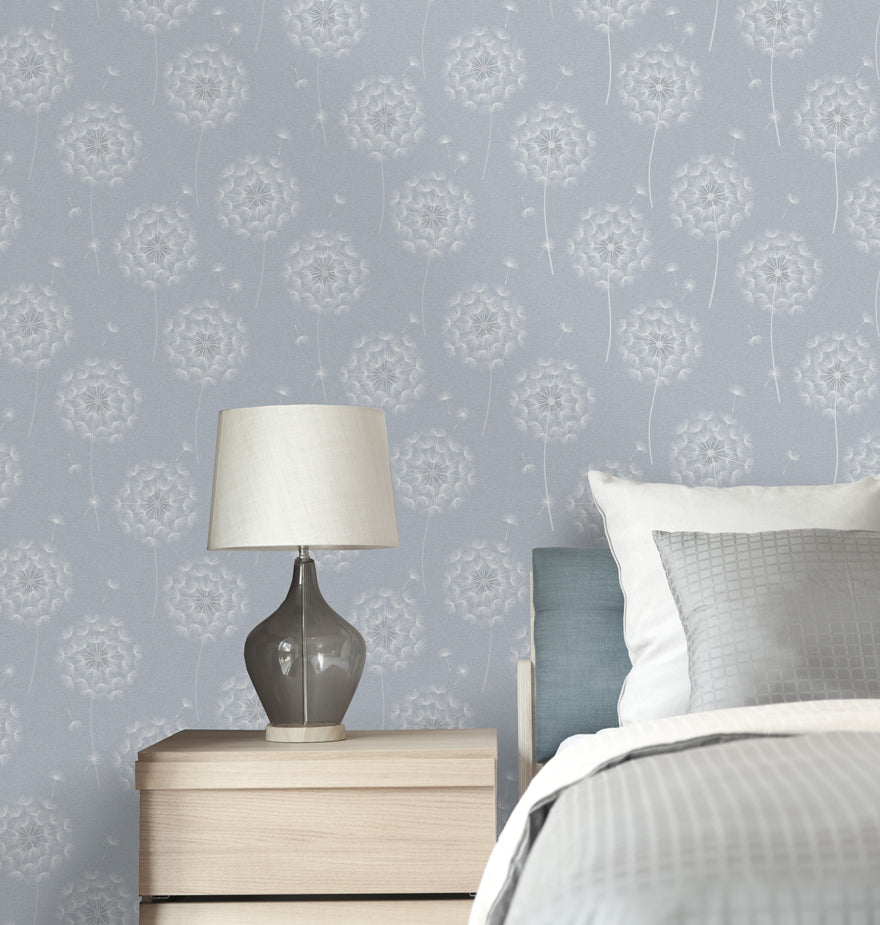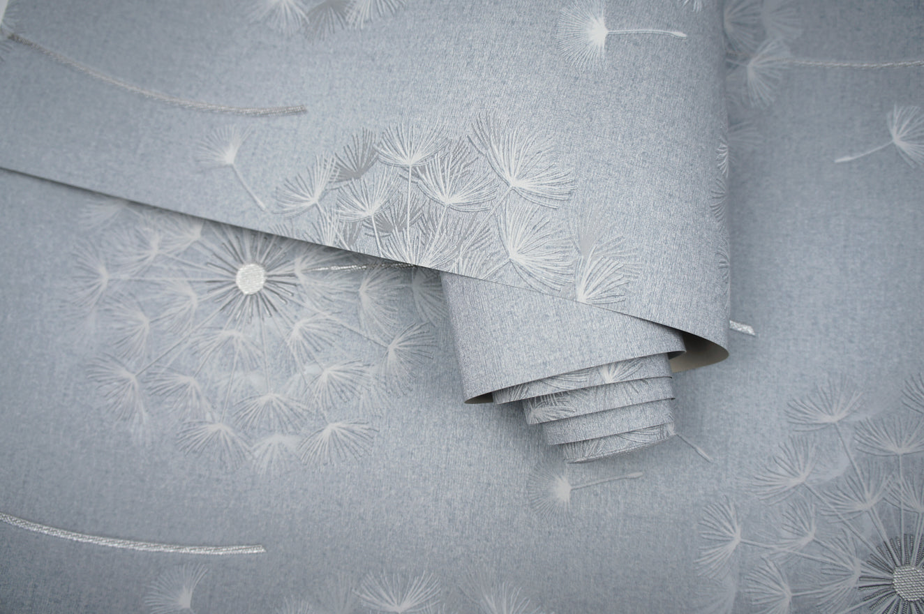 This wallpaper belongs in your home as a celebration of nature's delicate beauty. The dandelion design brings joyful movement to bedrooms or sunrooms, while the shimmering details elevate the look beyond ordinary florals. The blue hue ranges from soft to dramatic depending on lighting, offering versatile styling options - pair with crisp white for coastal vibes or rich navy for depth. Practical yet magical, it's designed to maintain its luminous quality for years, proving that wallcoverings can be both beautiful and enduring.