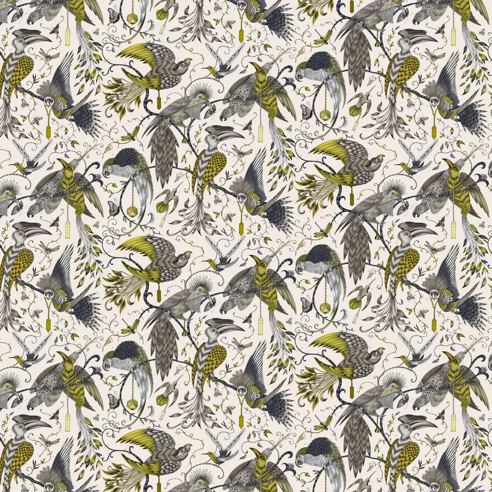 This captivating wallpaper showcases a vibrant, hand-drawn composition of exotic birds nestled amongst intricate, flourishing foliage, brought to life with shimmering metallic accents that catch the light and add a luxurious dimension. Each detail is infused with a sense of artistry and storytelling, drawing inspiration from the legacy of John James Audubon and his celebrated ornithological works. The design evokes the wonder of exploring a lush, untamed paradise, inviting the eye to wander through its layered textures and striking motifs.
