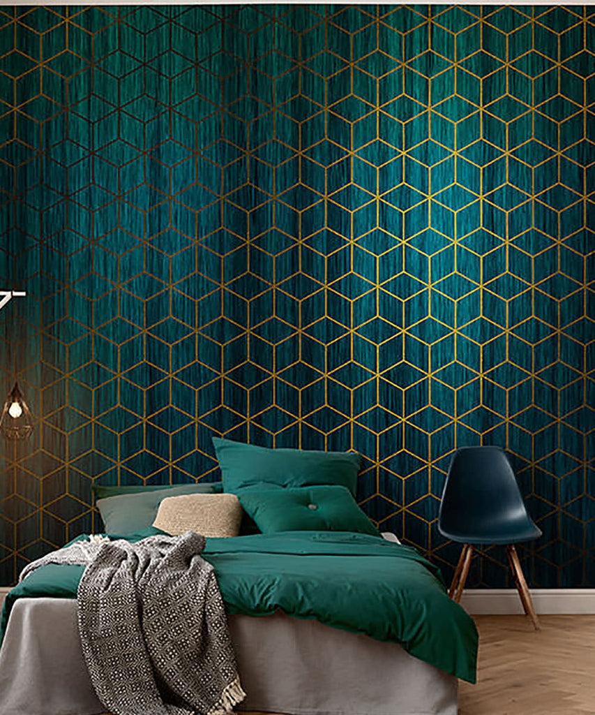 The Design: Who says walls can’t be art? The Mystique Vert Green brings a bold yet sophisticated touch to your space, combining deep, rich hues with a sleek geometric gold pattern that practically oozes modern elegance. Whether you choose the midnight navy or the emerald teal, the textured gradient creates a sense of depth and movement, giving your room an ultra-luxurious, dynamic vibe.