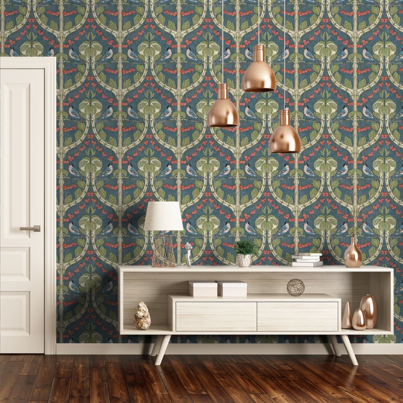 Birds & Cherries wallpaper by British legends G P & J Baker from the Original Brantwood collection.