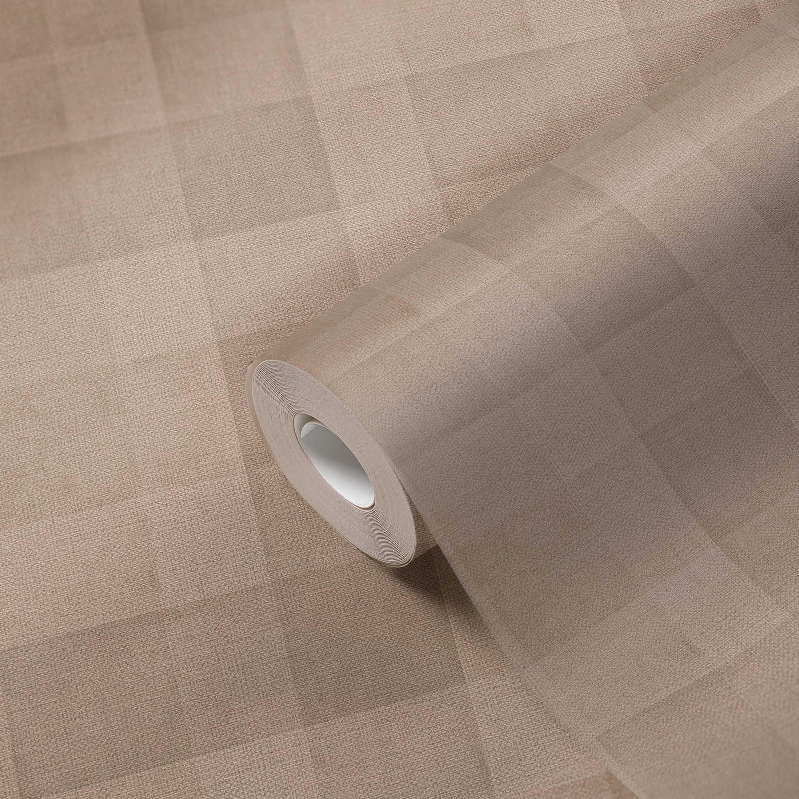 Featuring a classic checkered pattern in warm brown and soft cream tones, this wallpaper creates a cozy and inviting atmosphere that complements a variety of interior styles.
