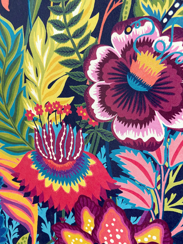 Bloom - a beautifully decorative design of blossoms and fantasy florals, Bloom is a feature wall hero mural. Dense foliage and intricately detailed flowers interlock and jostle for your attention, turning their heads with a colourful confidence.