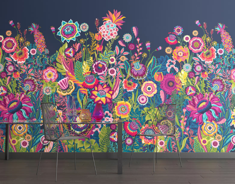 Bloom - Indigo - Hybrid Wallpaper Mural