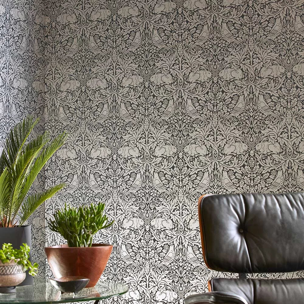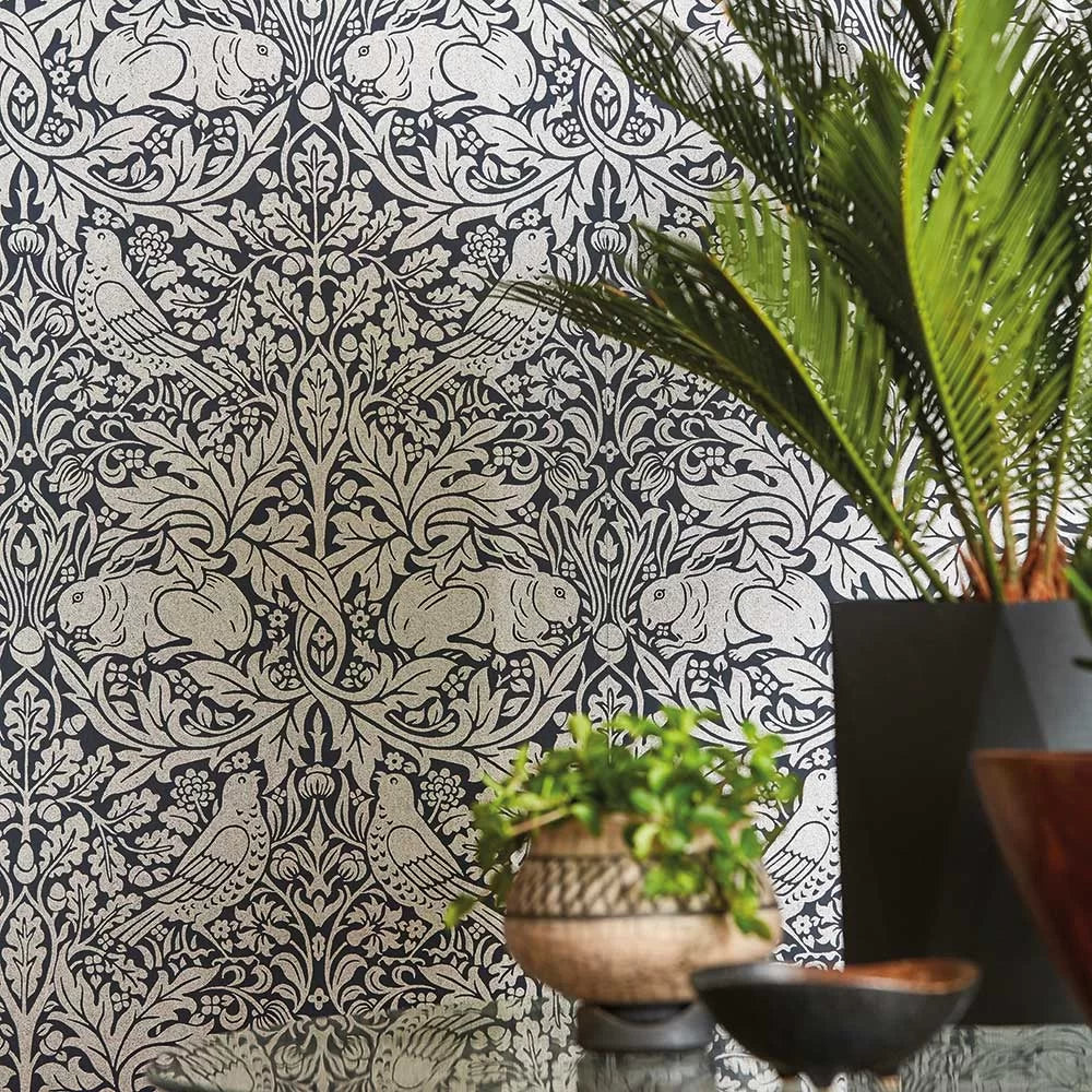 Brer Rabbit by Morris Wallpaper - Ink/Silver