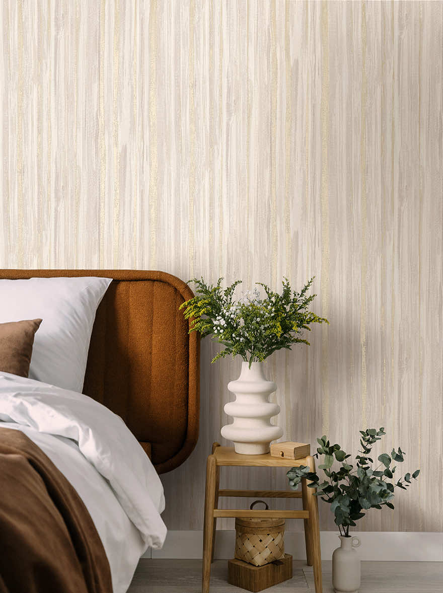 Calico is a striking, textured, striped design. The fluid brushstrokes add a sense of movement and the matte textures help the metallic elements gleam and catch the light. PVC-Free textured wallcovering.
