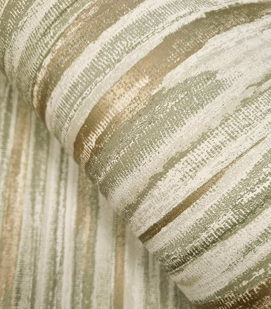 Calico is a striking, textured, striped design. The fluid brushstrokes add a sense of movement and the matte textures help the metallic elements gleam and catch the light. PVC-Free textured wallcovering.