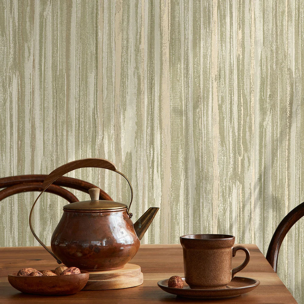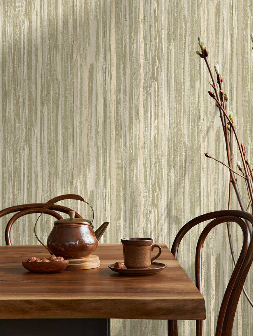 This wallpaper has that effortless, designed-but-not-overdone feel. The pattern reads like softly layered brushstrokes or woven textures, with vertical movement that adds depth without demanding attention. It’s detailed enough to be interesting up close, yet calm and balanced from a distance—one of those designs that quietly elevates a room rather than dominating it.