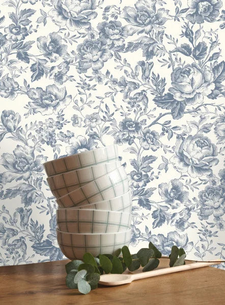 English roses Take the ferry across the Channel with Célestine! This bouquet of tea roses is irresistibly reminiscent of lush English cottage gardens. More French in style, the garnet red and ink blue colours are 100% inspired by toile de Jouy.