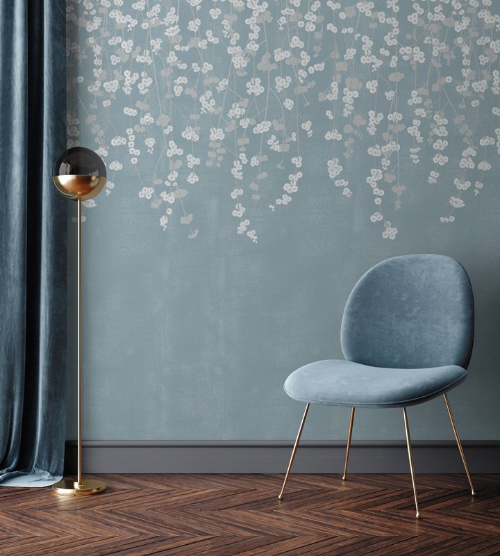 Surrender to the calm and serenity of Sakura blooms with the Cherry Blossom wallpaper by contemporary artist Joanna Charlotte. This beautiful Sakura wallpaper is perfect as a bedroom wallpaper, or to create a romantic hallway. In its Duck Egg colour, the Cherry Blossom wallpaper embraces the romantic with classic blue duck egg tones intertwined with delicate floral fronds.