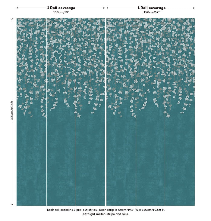 Surrender to the calm and serenity of Sakura blooms with the Cherry Blossom wallpaper by contemporary artist Joanna Charlotte. This beautiful Sakura wallpaper is perfect as a bedroom wallpaper, or to create a romantic hallway. In its Duck Egg colour, the Cherry Blossom wallpaper embraces the romantic with classic blue duck egg tones intertwined with delicate floral fronds.