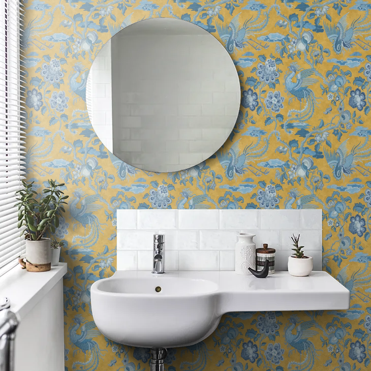 Chifu (not related to Kung Fu Panda) by legionary GP Baker's from the Signature II Wallpaper collection, is a beautiful, decorative Chinoiserie style wallpaper. Featuring a stunning fruit and blossom trail with exotic birds of paradise. Wide width product.