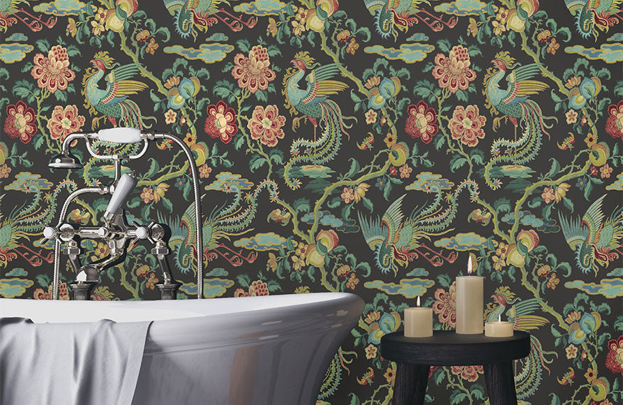 Chifu (not related to Kung Fu Panda) by legionary GP Baker's from the Signature II Wallpaper collection, is a beautiful, decorative Chinoiserie style wallpaper. Featuring a stunning fruit and blossom trail with exotic birds of paradise. Wide width product.