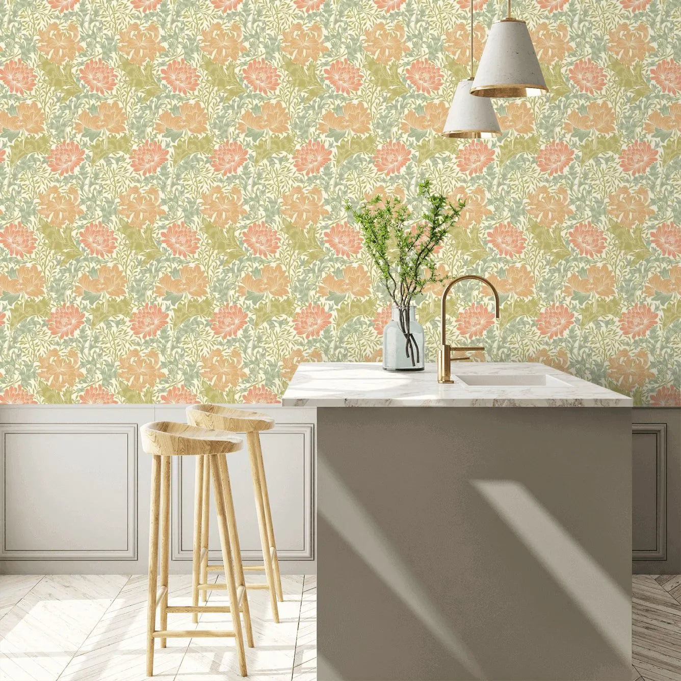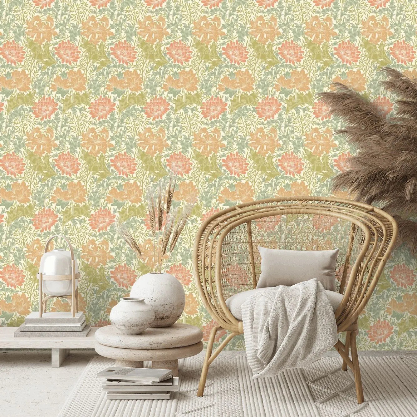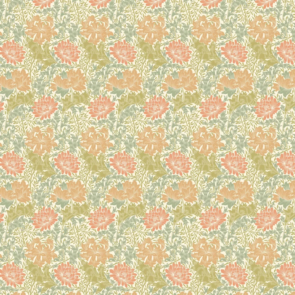 Chrysanthemum - Eden by Morris Wallpaper - Sage/Amber