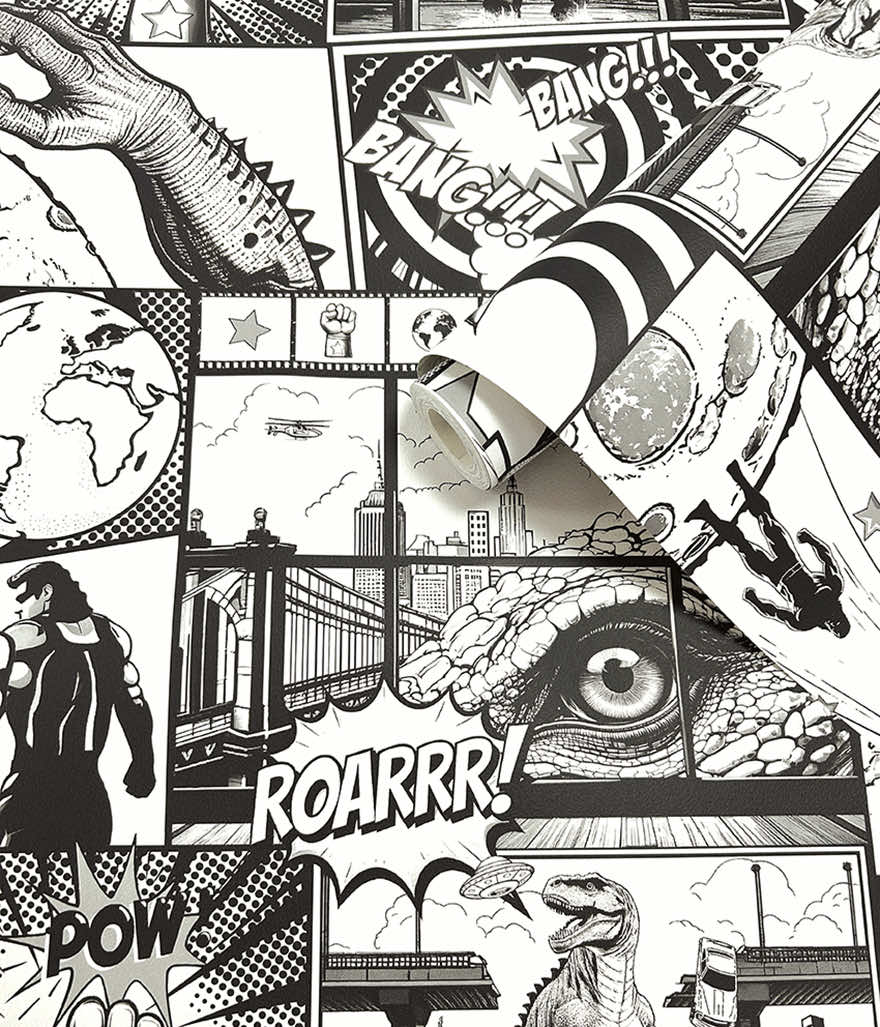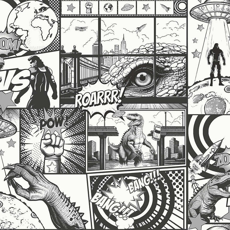 City Hero brings the epic adventure to your walls with a comic book story unfolding panel by panel. Watch as a towering monster crashes through the city, only to be met by a fearless hero there to save the day!