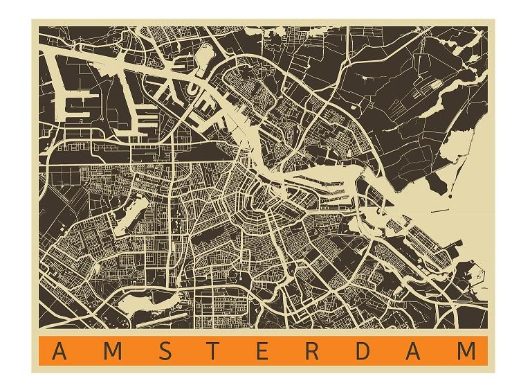 City Map Many Cities - Custom Sized Wallpaper Mural (per m2) - Amsterdam Retro