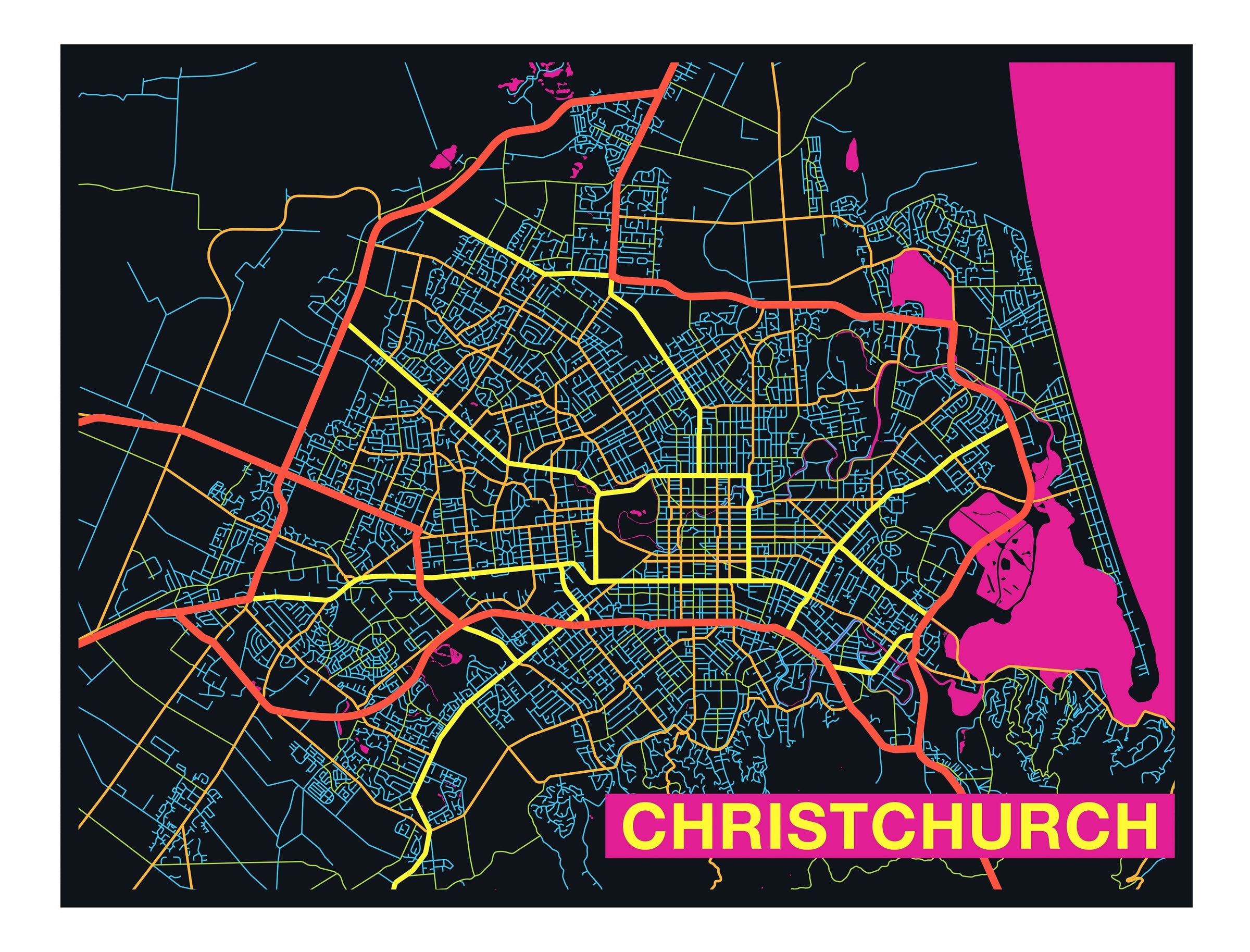 City Map Many Cities - Custom Sized Wallpaper Mural (per m2) - Christchurch Candy