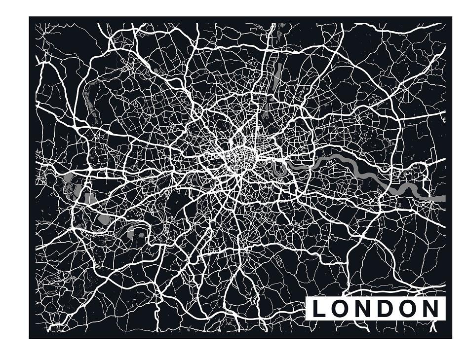 City Map Many Cities - Custom Sized Wallpaper Mural (per m2) - London Ebony