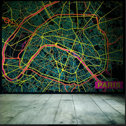 City Map Many Cities - Custom Sized Wallpaper Mural (per m2) - Paris Multicolored