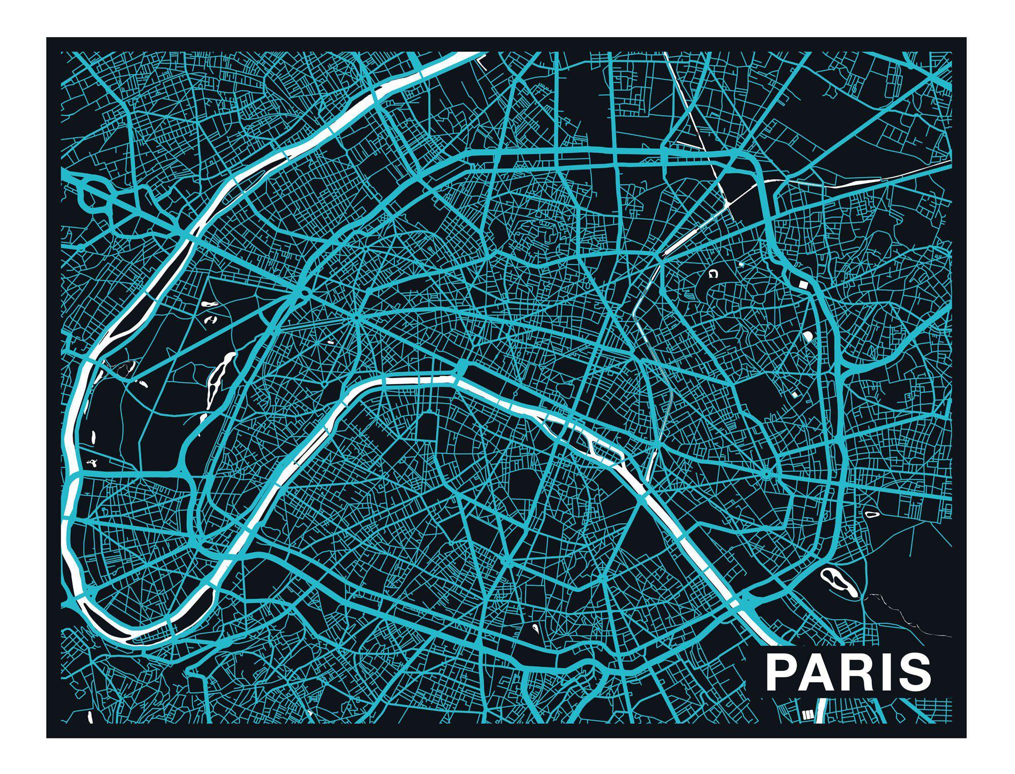 City Map Many Cities - Custom Sized Wallpaper Mural (per m2) - Paris Night