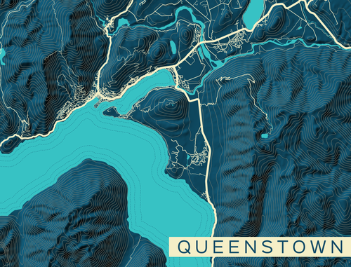 City Map Many Cities - Custom Sized Wallpaper Mural (per m2) - Queenstown