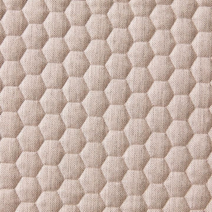 This fabric features a unique, eye-catching hexagonal pattern that's been beautifully stitched to create a plush, three-dimensional surface. It's reminiscent of a classic honeycomb, giving it a playful, geometric flair while feeling wonderfully soft to the touch. The quilted texture adds a layer of depth and luxury that makes it a true standout.