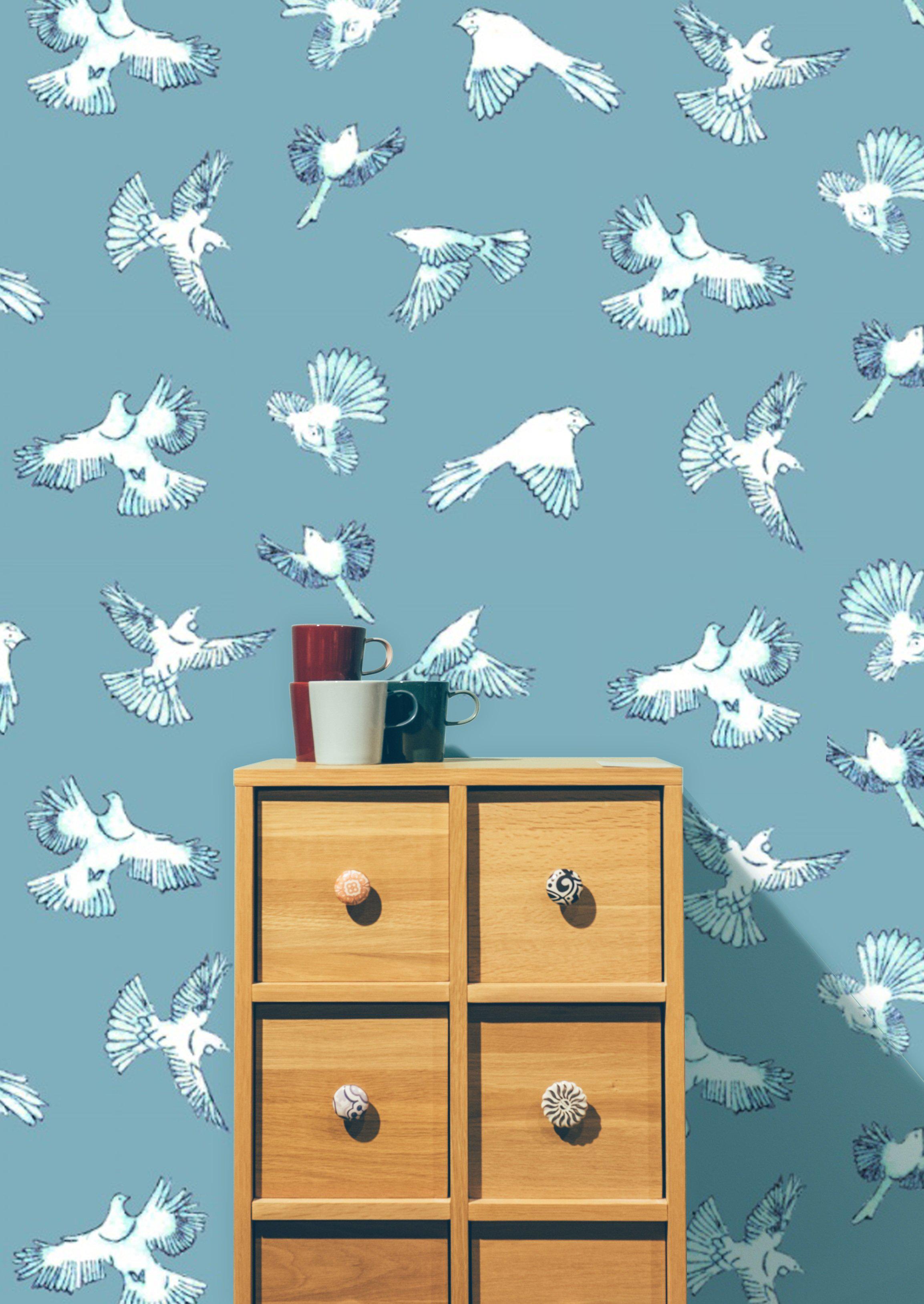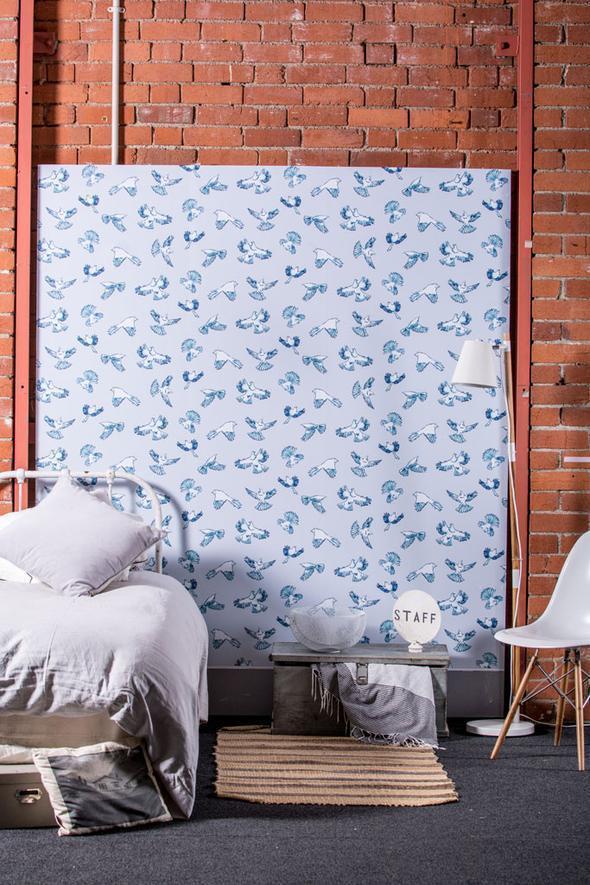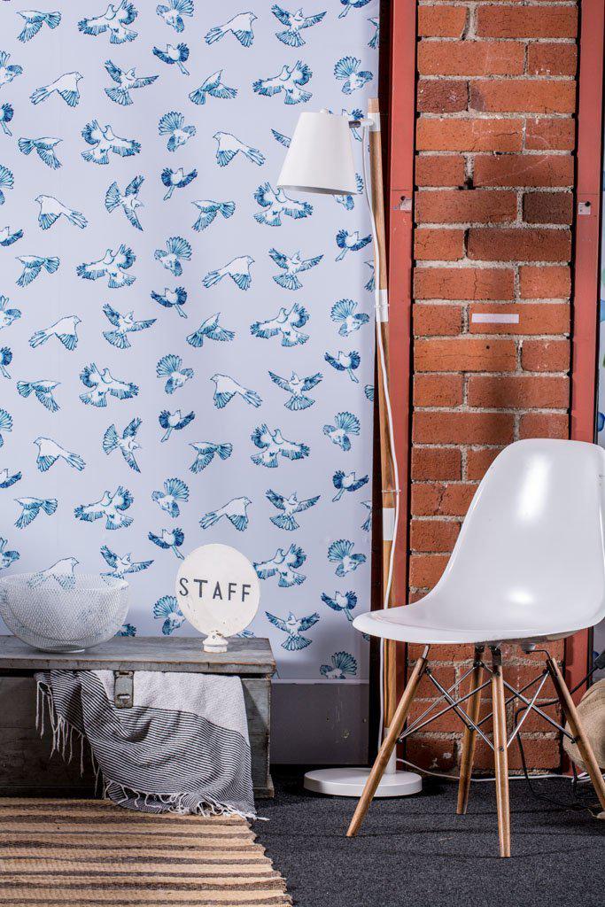 Dawn Chorus wallpaper is from our new and exciting Pango + Ma NZ pattern collection. A truly stunning wallpaper design 'Dawn Chorus' is part of the Fly Home series. Featuring the iconic bird life of New Zealand on two different coloured backgrounds. Check out the Fantails, Tui and Kereru flapping up a storm. The Fly Home series is a collaboration between the wonderful Nester Prints (printmaker/illustrator) and Twill Textile Design and is exclusive to The Inside and Pango and Ma. If you can't find the colour or size you are after drop us a line for a non obligation custom quote.