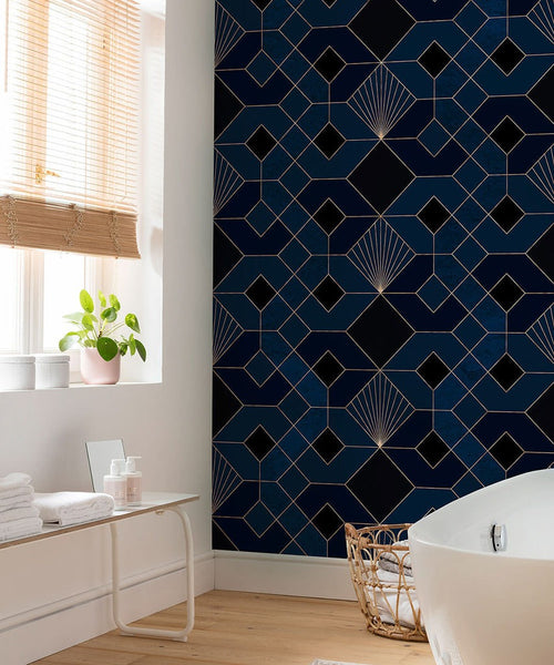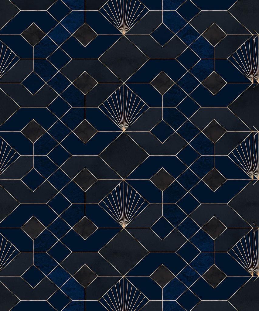 Deco Obsidian - Blue - Custom Sized Wallpaper Mural (per m2)