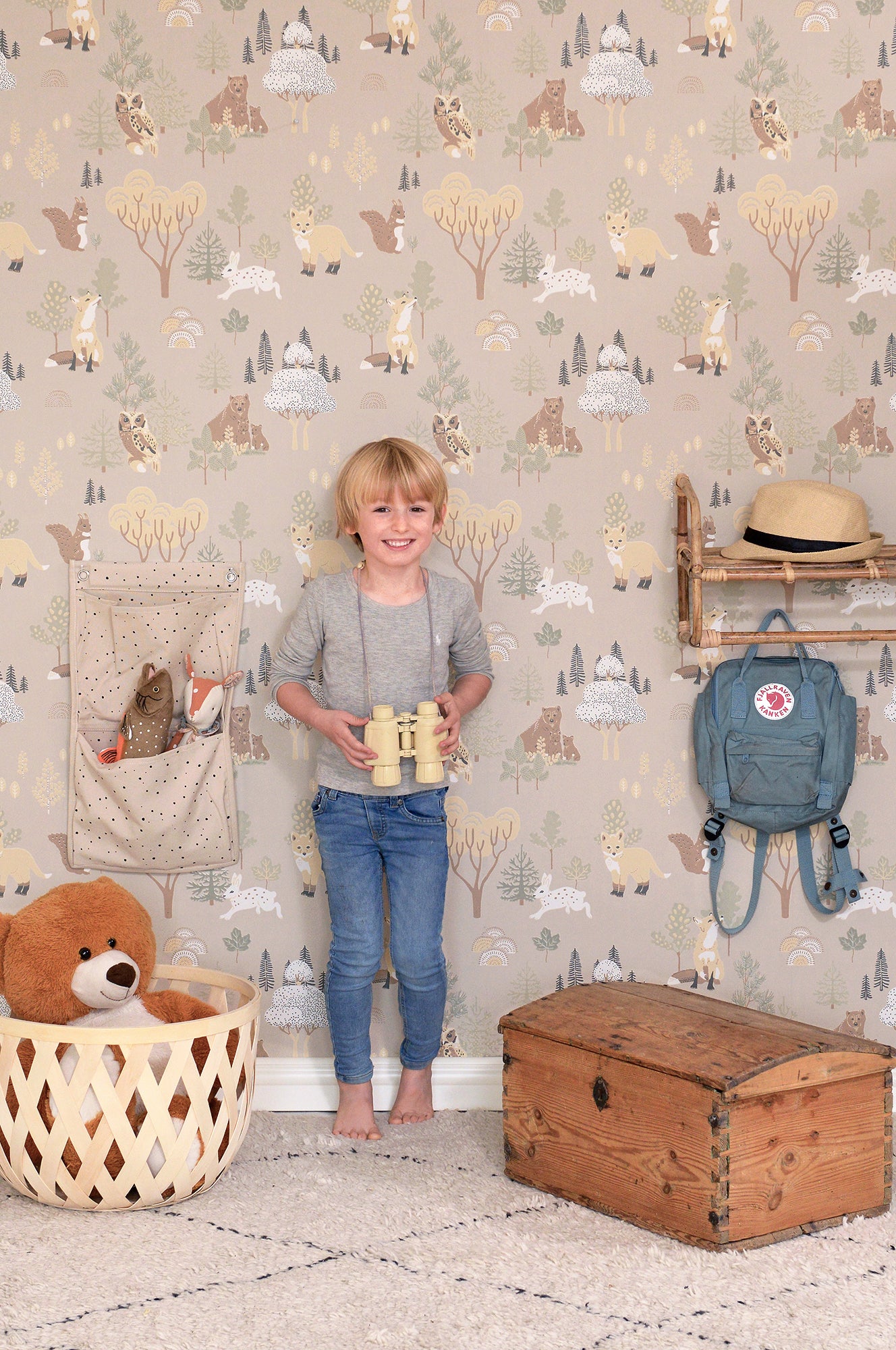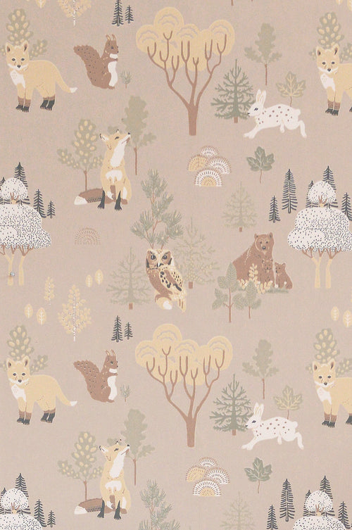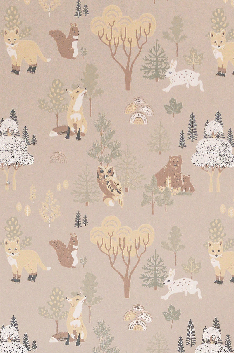 All the way from Scandinavia is our adorable Deep Forest Wallpaper. Featuring foxes, rabbits bears, owls and squirrels with an almost hand painted feel.