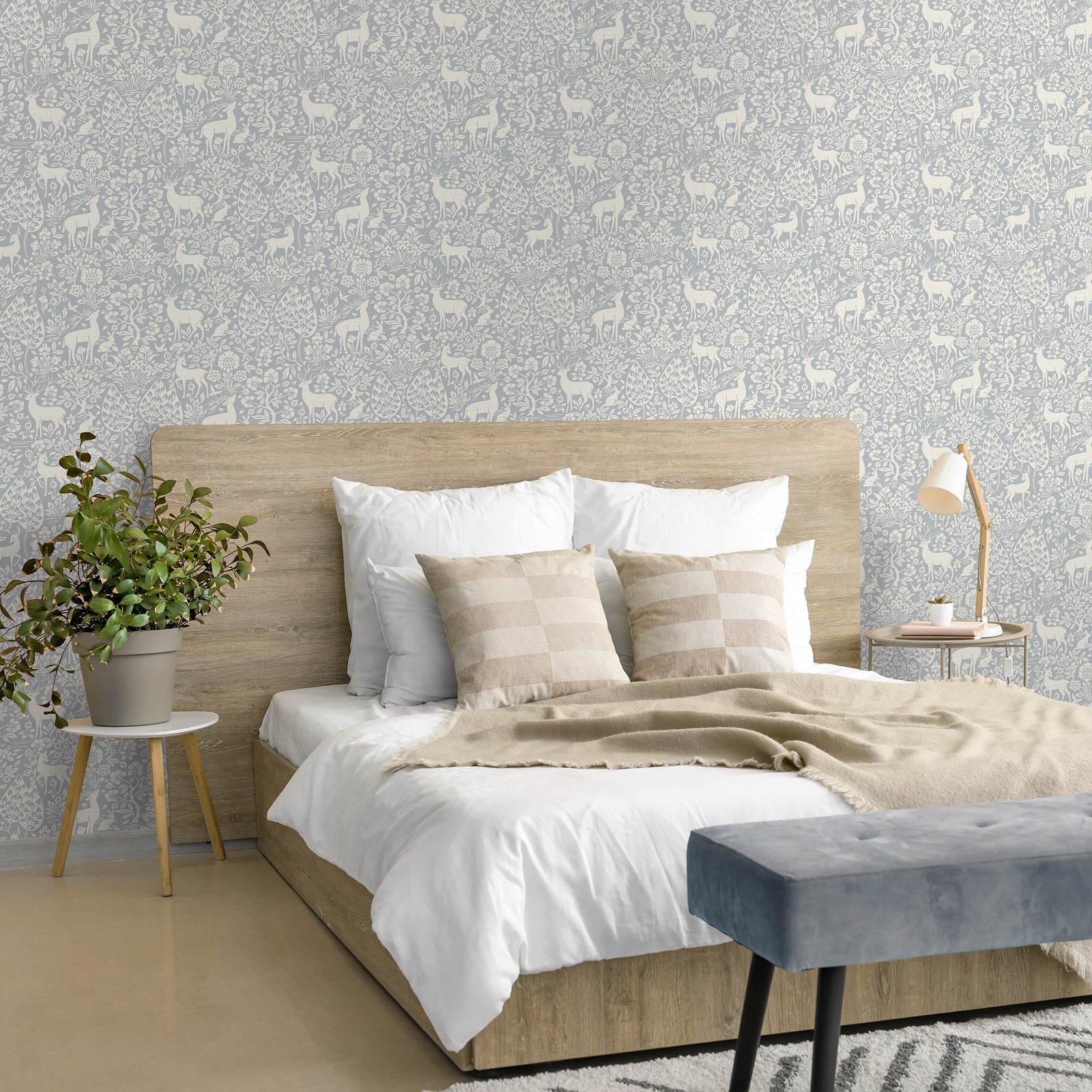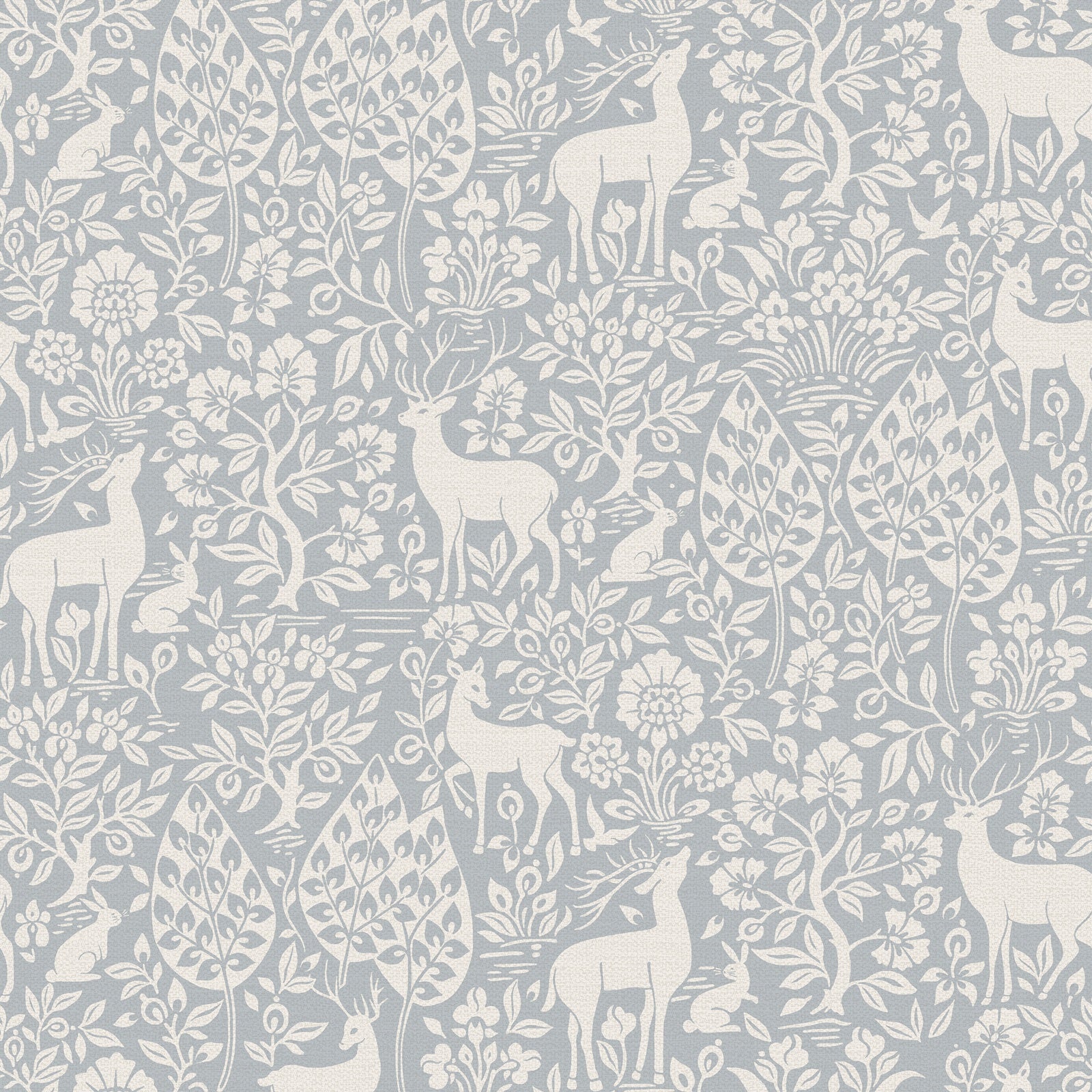 A peaceful forest scene with deer and rabbits, the natural beauty enhanced by a soft linen texture that ties the wildlife and landscape together.