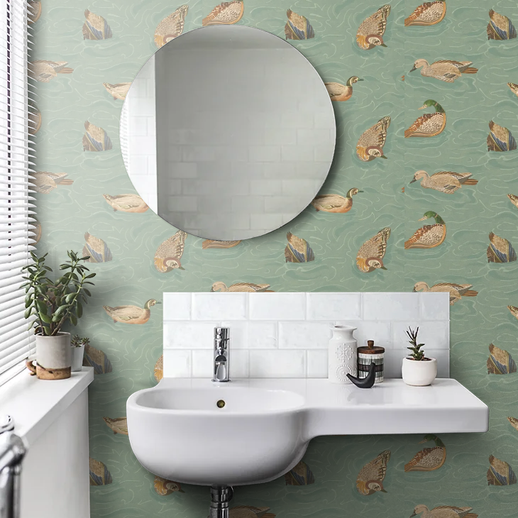 Duck Pond Wallpaper by Mulberry Home - Teal