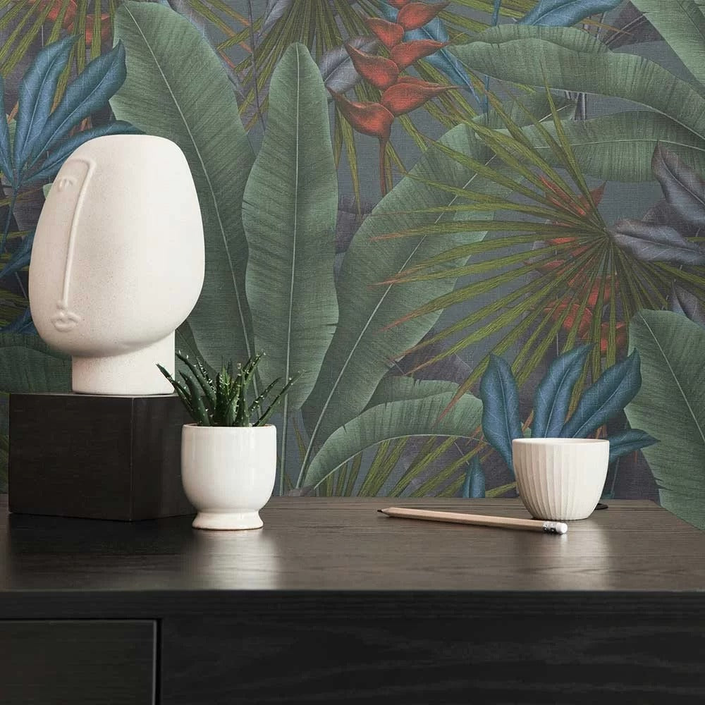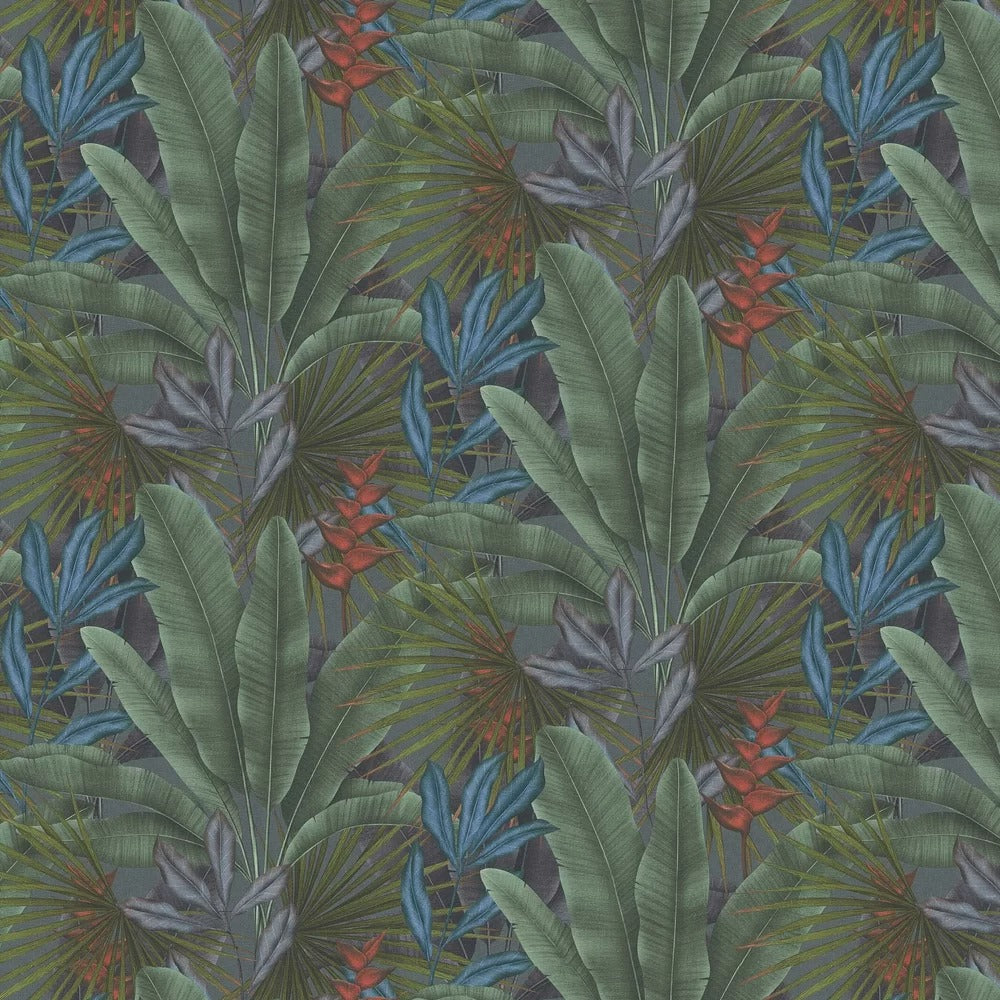 Towering banana leaves, wide fan palms, and flashes of striking tropical flowers all woven together in a rich, multi-layered tapestry. This pattern is all about immersive texture and bold, lush forms that bring an immediate sense of adventure and sophistication to your space.