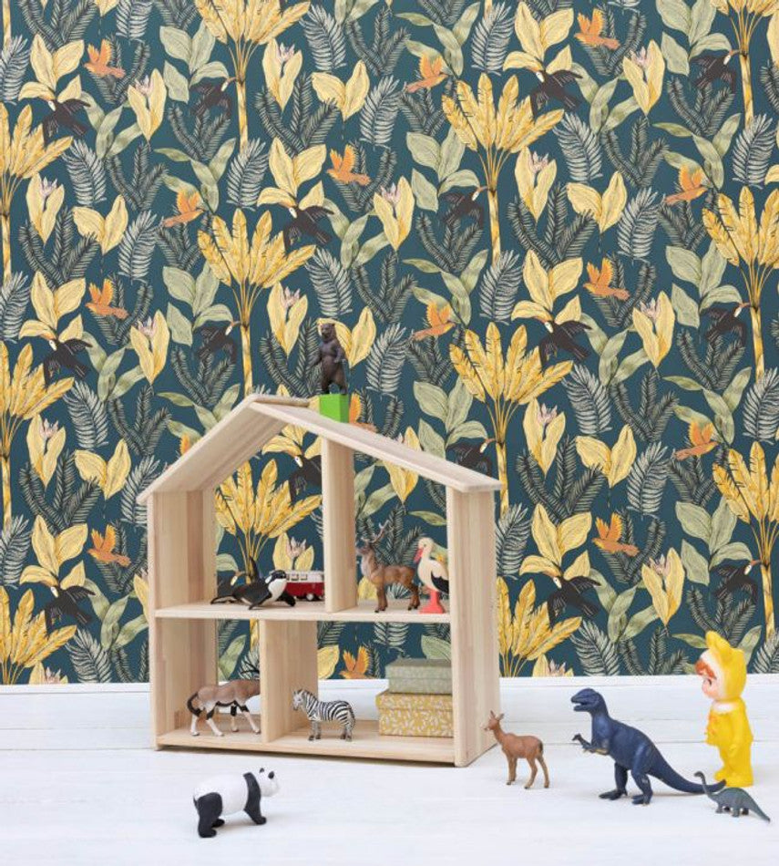 The Autour Du Monde Explorer wallpaper captures the essence of a secret garden, where nature flourishes with grace and intrigue. The intricate design showcases a variety of plants and foliage, each leaf carefully detailed to evoke a sense of lushness and tranquillity. Amongst this botanical tapestry, a few black birds add a touch of mystery and whimsy, inviting your imagination to take flight.