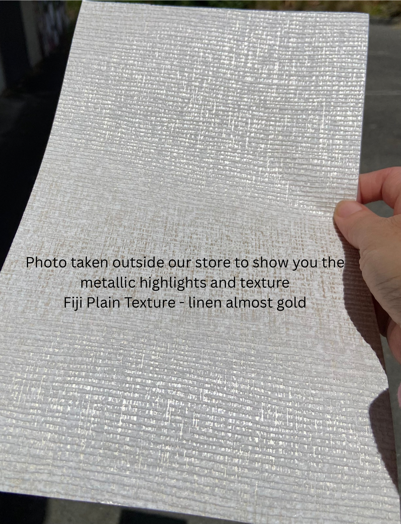 The Fiji Texture Wallpaper from Rasch's Elegant Homes range is the perfect complement to the striking designs within the collection, especially the popular Fiji Leaf print. This textured plain wallpaper offers a refined, understated backdrop, designed to harmonize beautifully with the bolder patterns in the range. With its subtle texture, the Fiji Texture wallpaper adds depth and dimension to your walls, creating a sophisticated finish without overpowering the room’s décor. Shown here in Linen colour with an almost gold undertone.