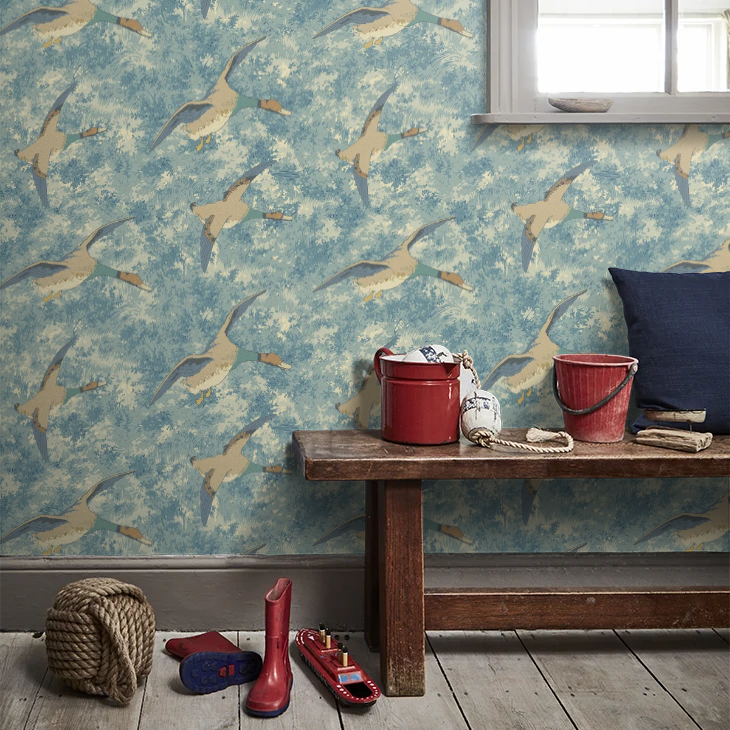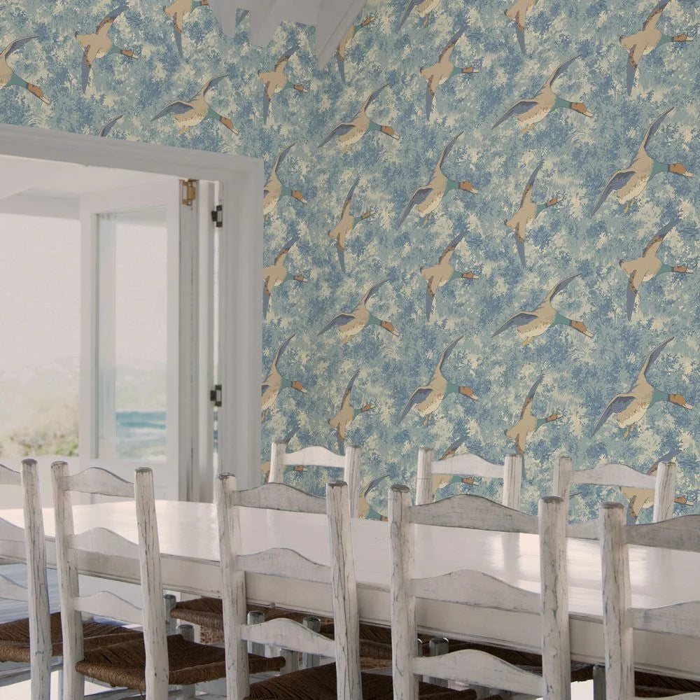 Forest Ducks by Mulberry Home Wallpaper - Blue