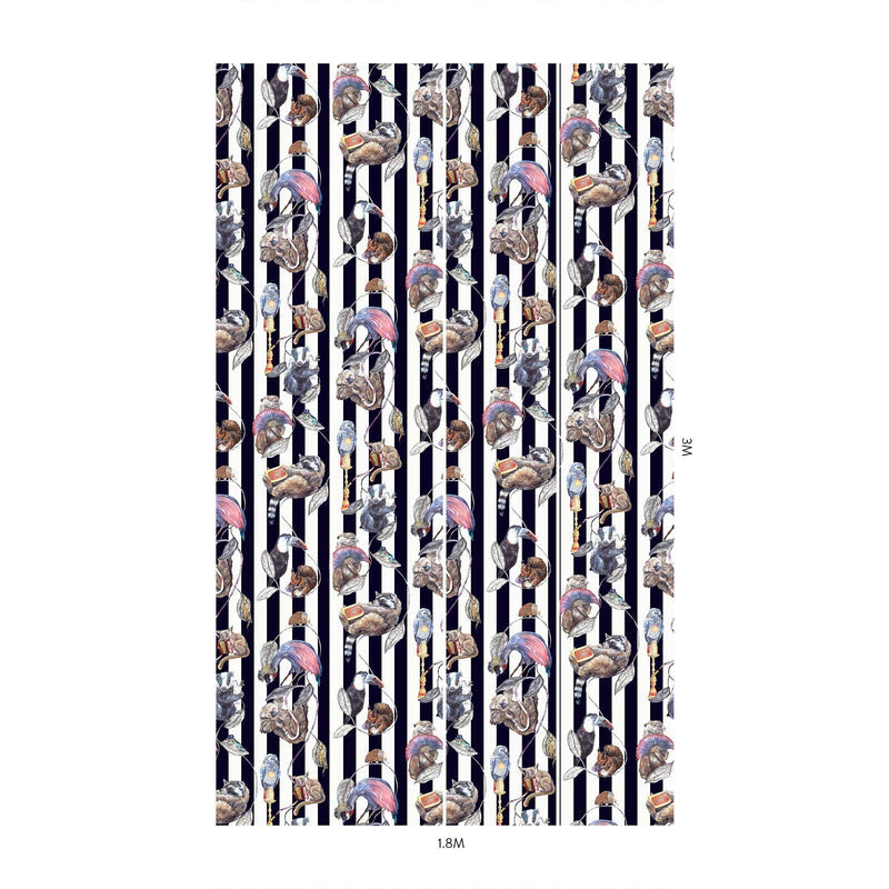 Each stroke of the artist's brush brings to life a menagerie of characters – a hookah-smoking sloth, a frog in a bowler hat, a fanning otter, and an imbibing badger, among others. Originally oil-painted onto wood, the wallpaper boasts a handcrafted finish that adds a touch of artisanal elegance to your space.