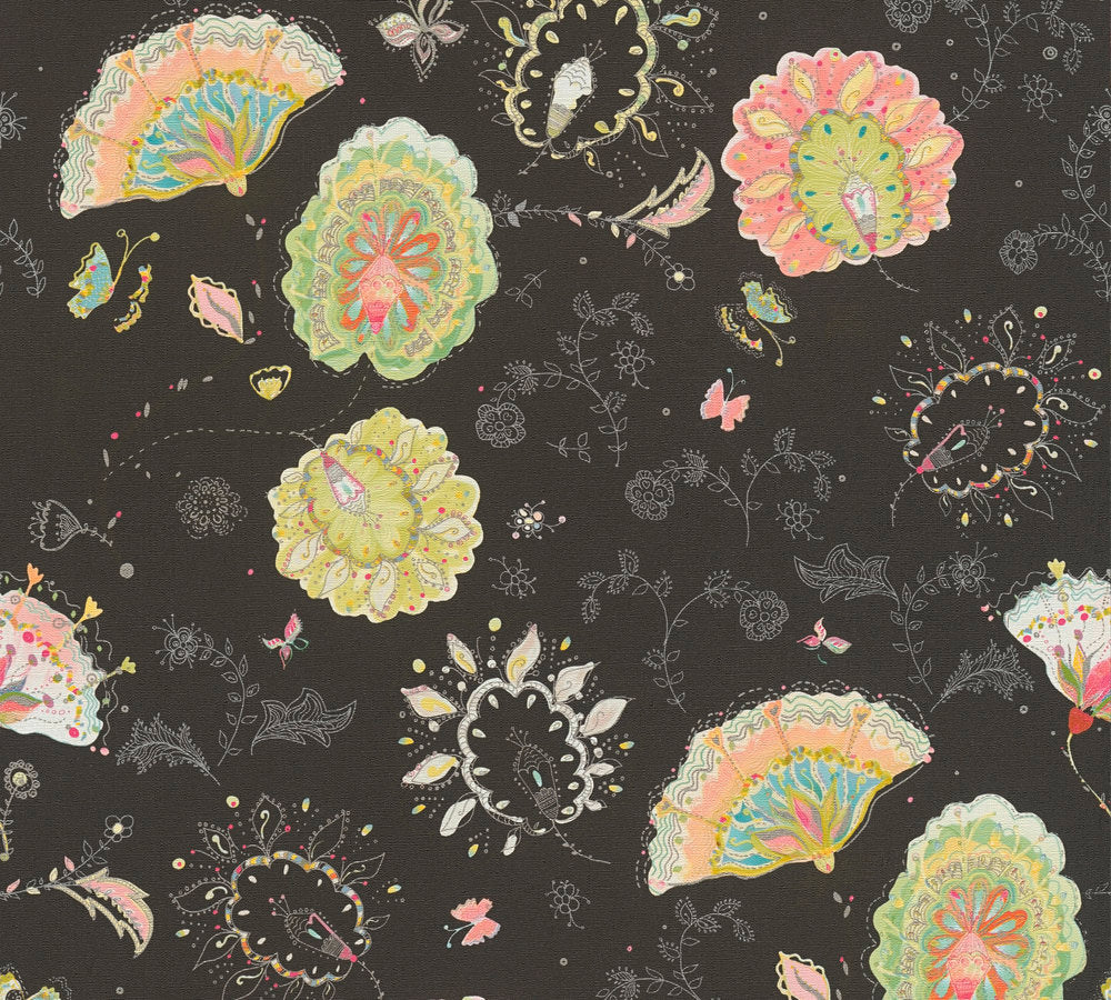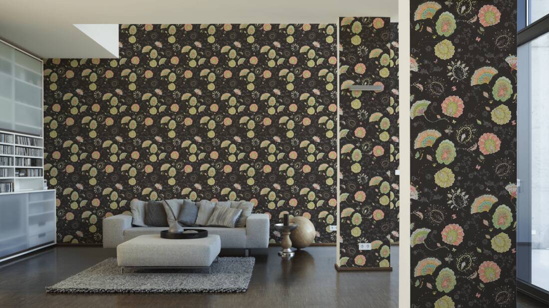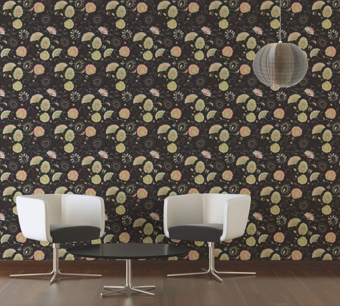 Patterned Flower Wallpaper - House of Turnowsky - Black