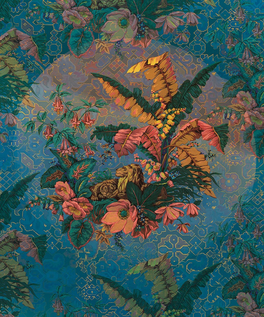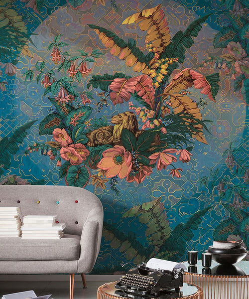 Jungle Majesty - Blue - Custom Sized Wallpaper Mural (per m2)