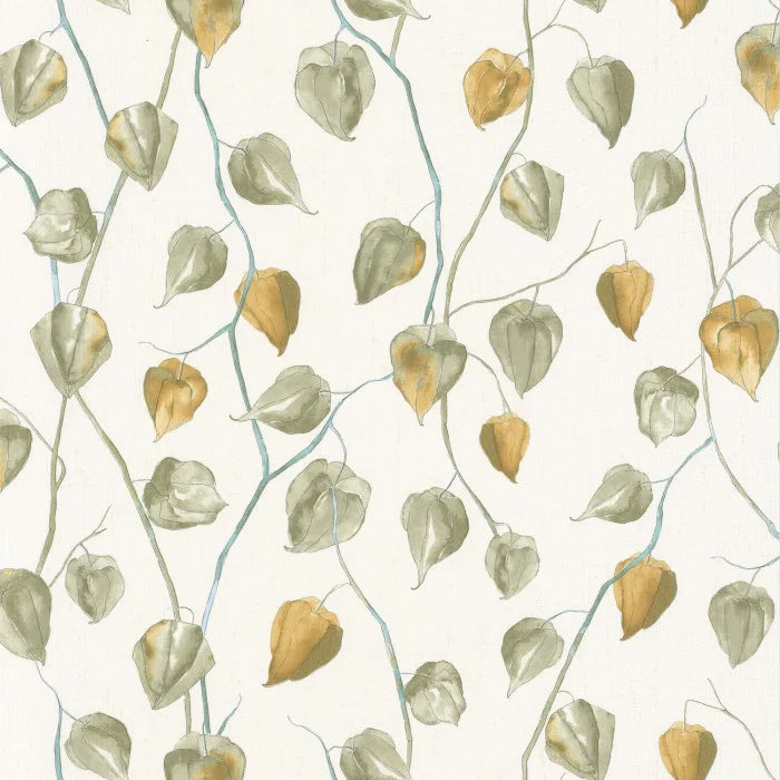 Lanternes Ginkgo Wallpaper - Sage on White