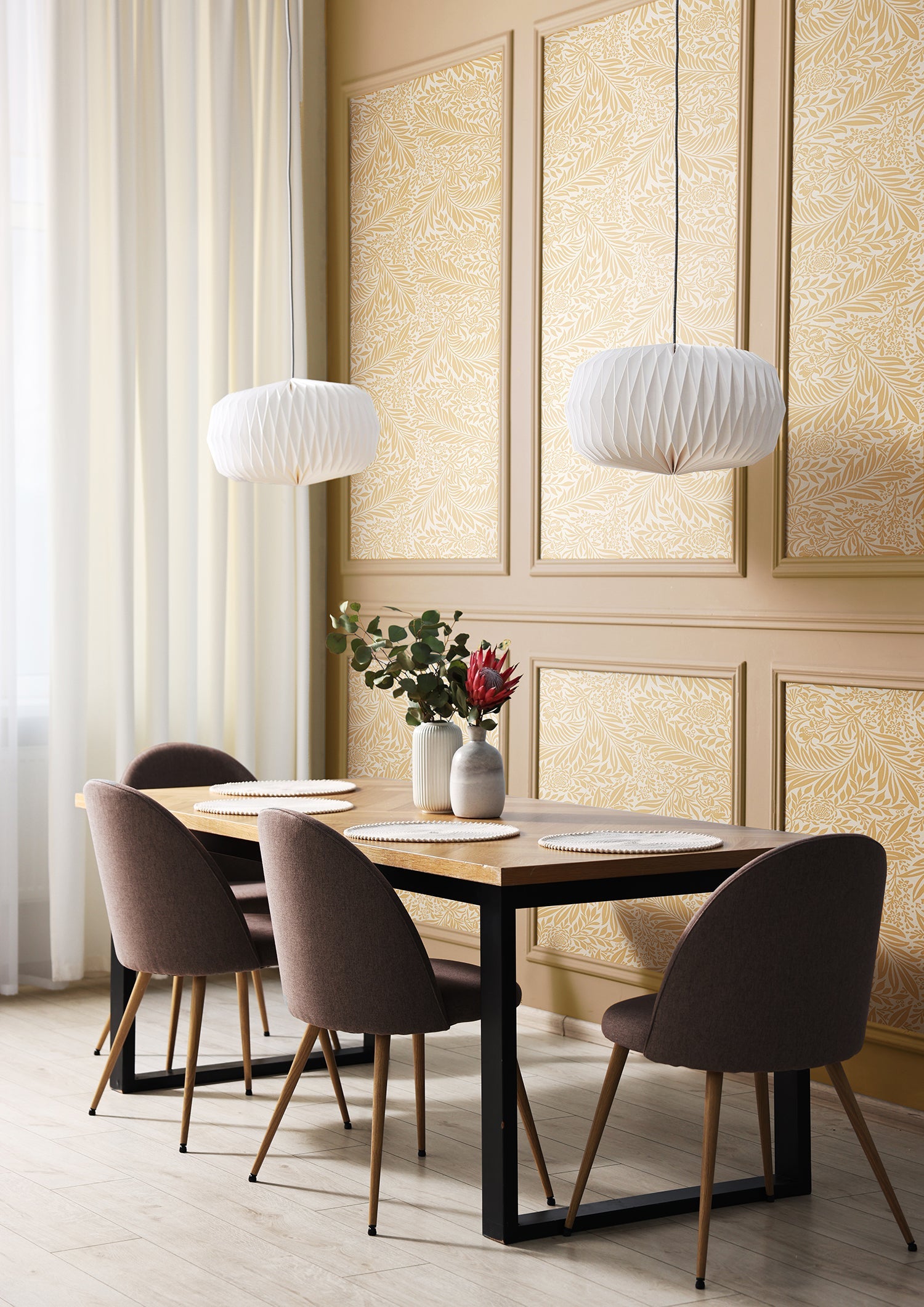 Step into a world of timeless beauty with our Leaf Vine Wallpaper, a classic design inspired by the intricate botanical patterns of the 1900s. This elegant wallpaper brings the natural world indoors with curling vines, graceful leaves, and soft floral details, all set against a subtle dotted background. The result is a pattern that feels both historic and fresh, offering a perfect blend of vintage charm and understated sophistication.