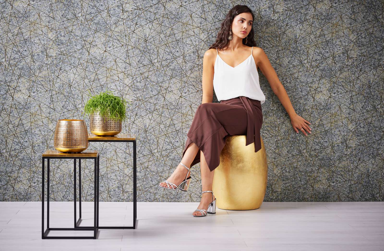 With a touch of contemporary artistry into your space with this striking linear web design. This wallpaper features a sophisticated, all-over pattern of interlocking lines and geometric forms, creating a subtle yet captivating texture that adds depth and modern rhythm to your walls. The refined, web-like motif acts as a versatile graphic layer, providing visual interest without overwhelming a room.