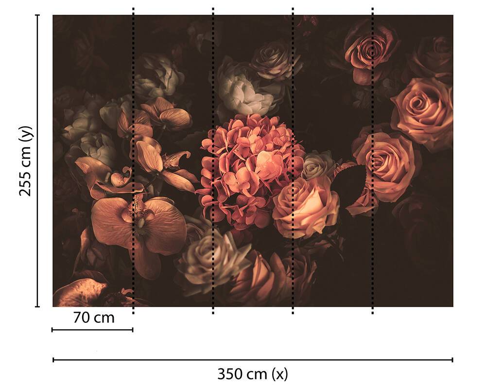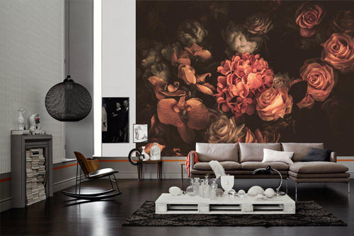 Romantic Flowers - Orange Tint - Custom Sized Wallpaper Mural (per m2)