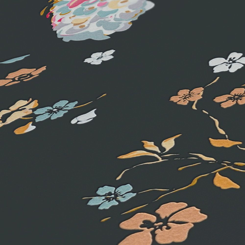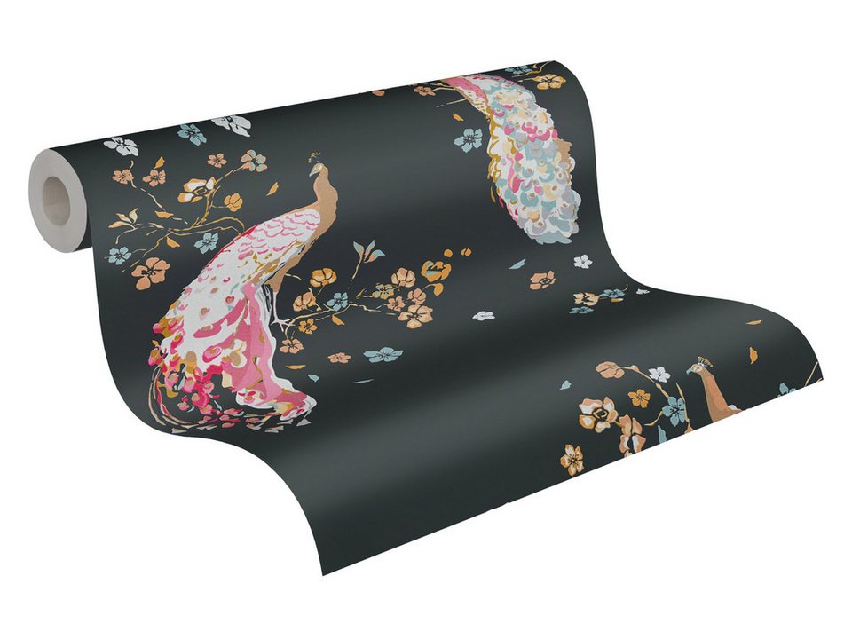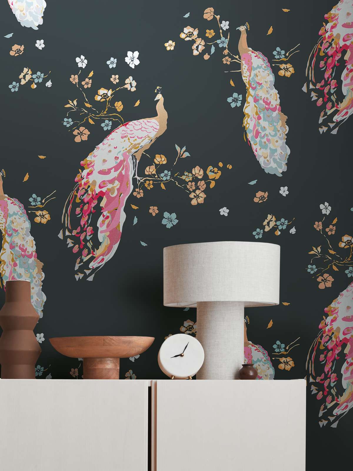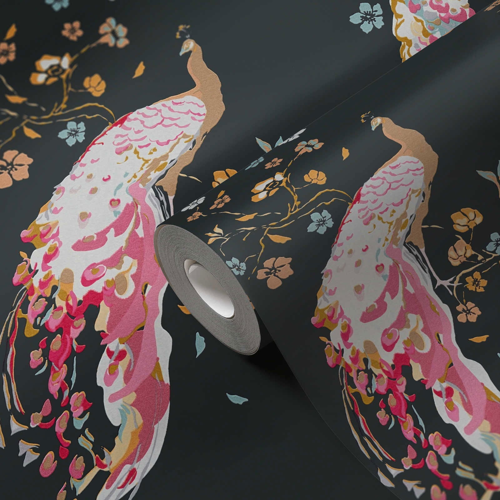 Majestic Peacock & Blossom Wallpaper - House of Turnowsky - Black