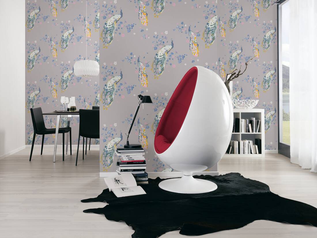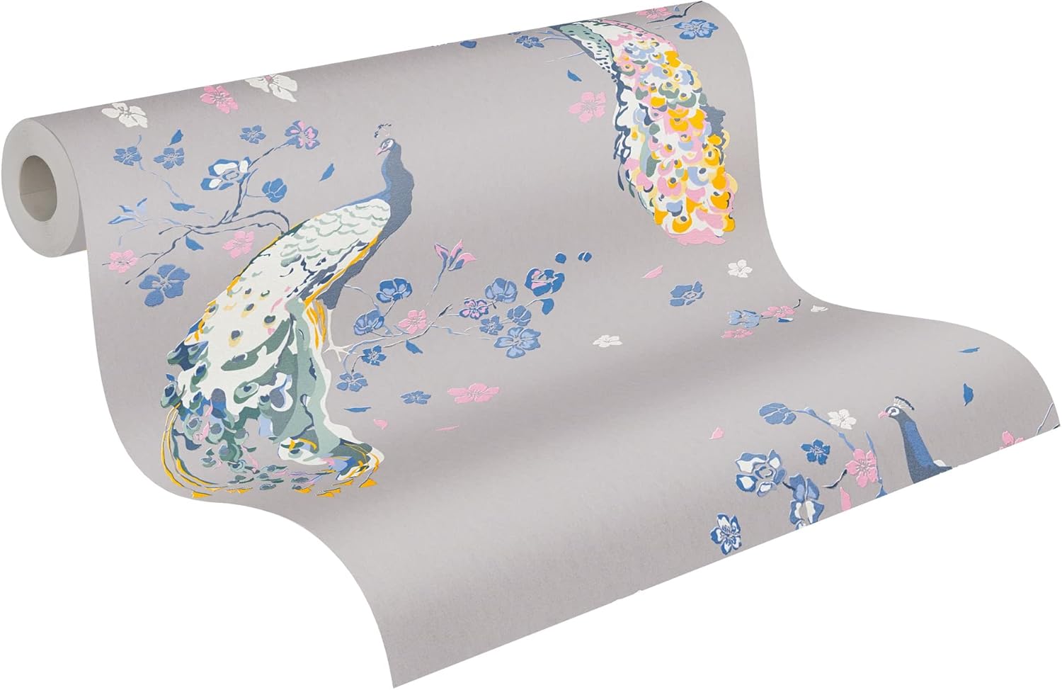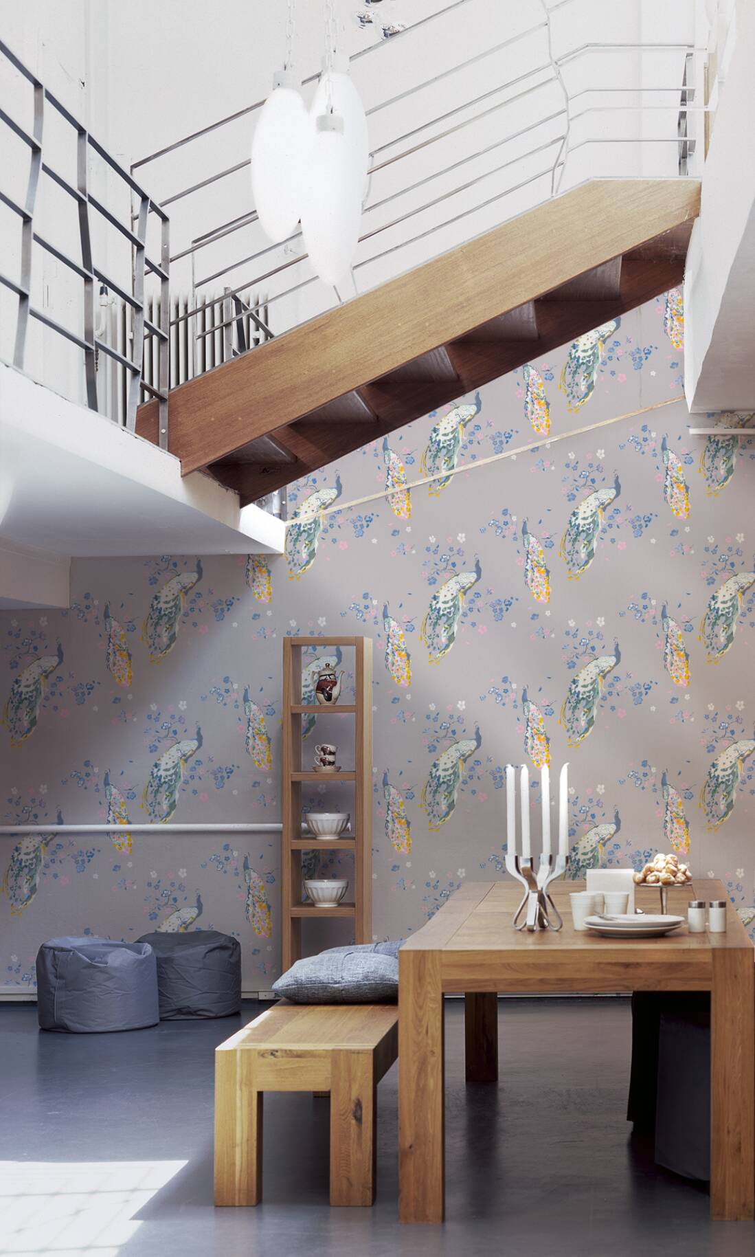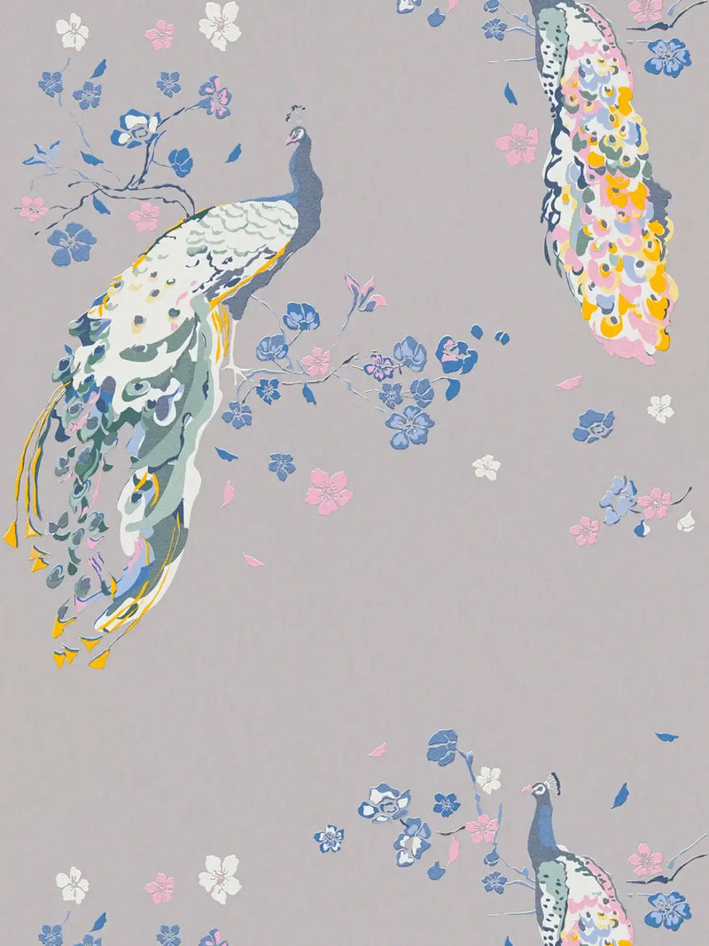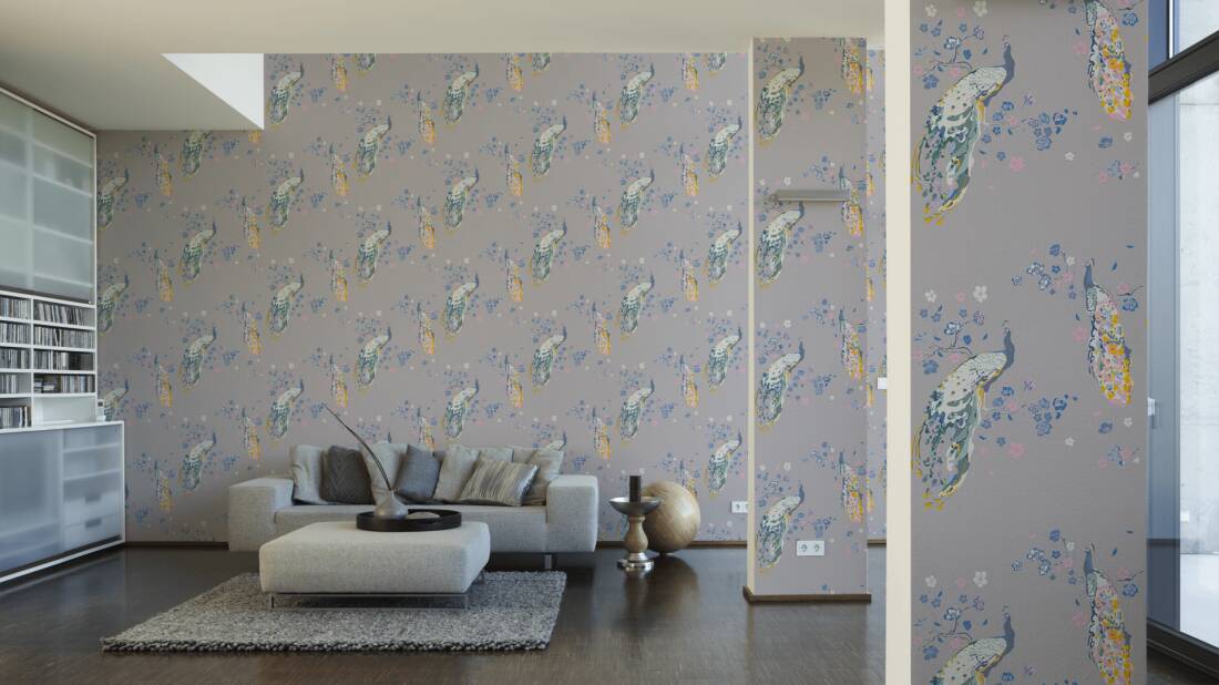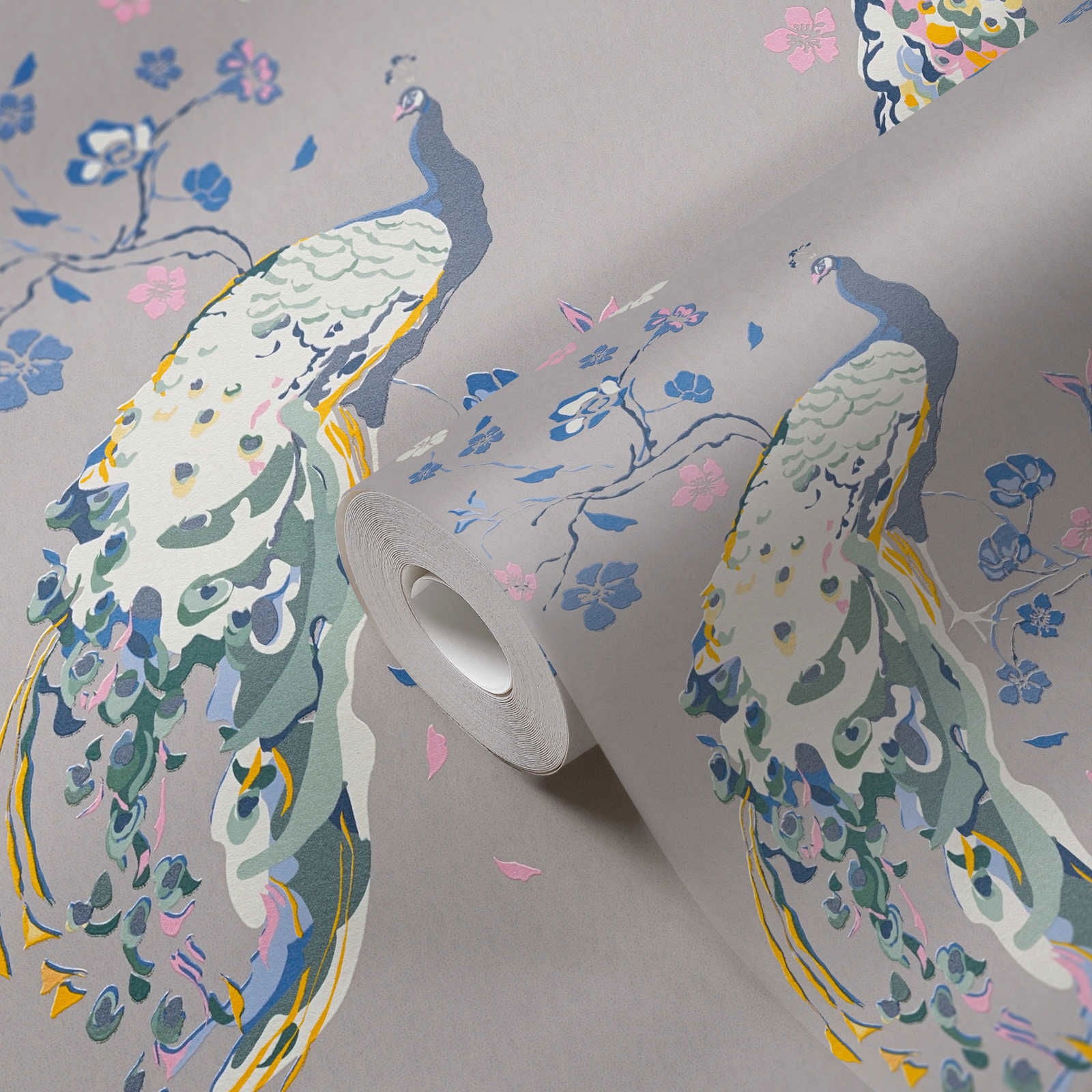 Majestic Peacock & Blossom Wallpaper - House of Turnowsky - Grey/Blue