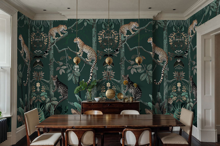 Panthera Mural Hybrid Wallpaper - Forest Green