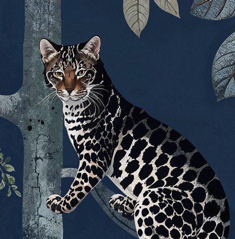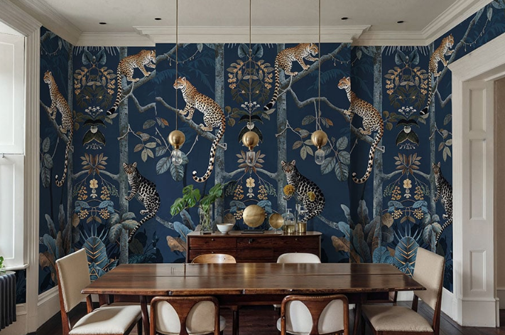Panthera Mural Hybrid Wallpaper - Midnight Blue