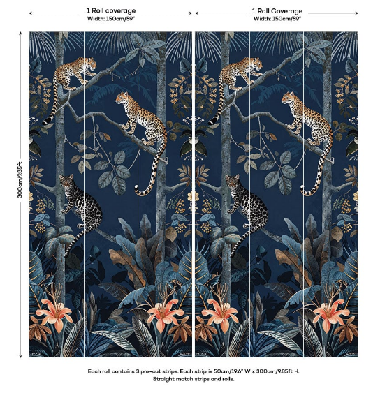 A dash of the wild for your walls - the Panthera mural is outstanding. This jungle leopard wallpaper is the epitome of an elevated tropical wallpaper. Crafted with an eye for intricate illustration detail, this high-quality wallpaper showcases majestic leopards lounging amongst rich foliage, creating a composition that radiates sophistication. This stunning wallpaper Jungle leopard wallpaper lends itself to a diverse range of interior design schemes, from the ornate and glamorous to the sleek and modern. Perfect for those who desire to add a touch of opulence to their surroundings.